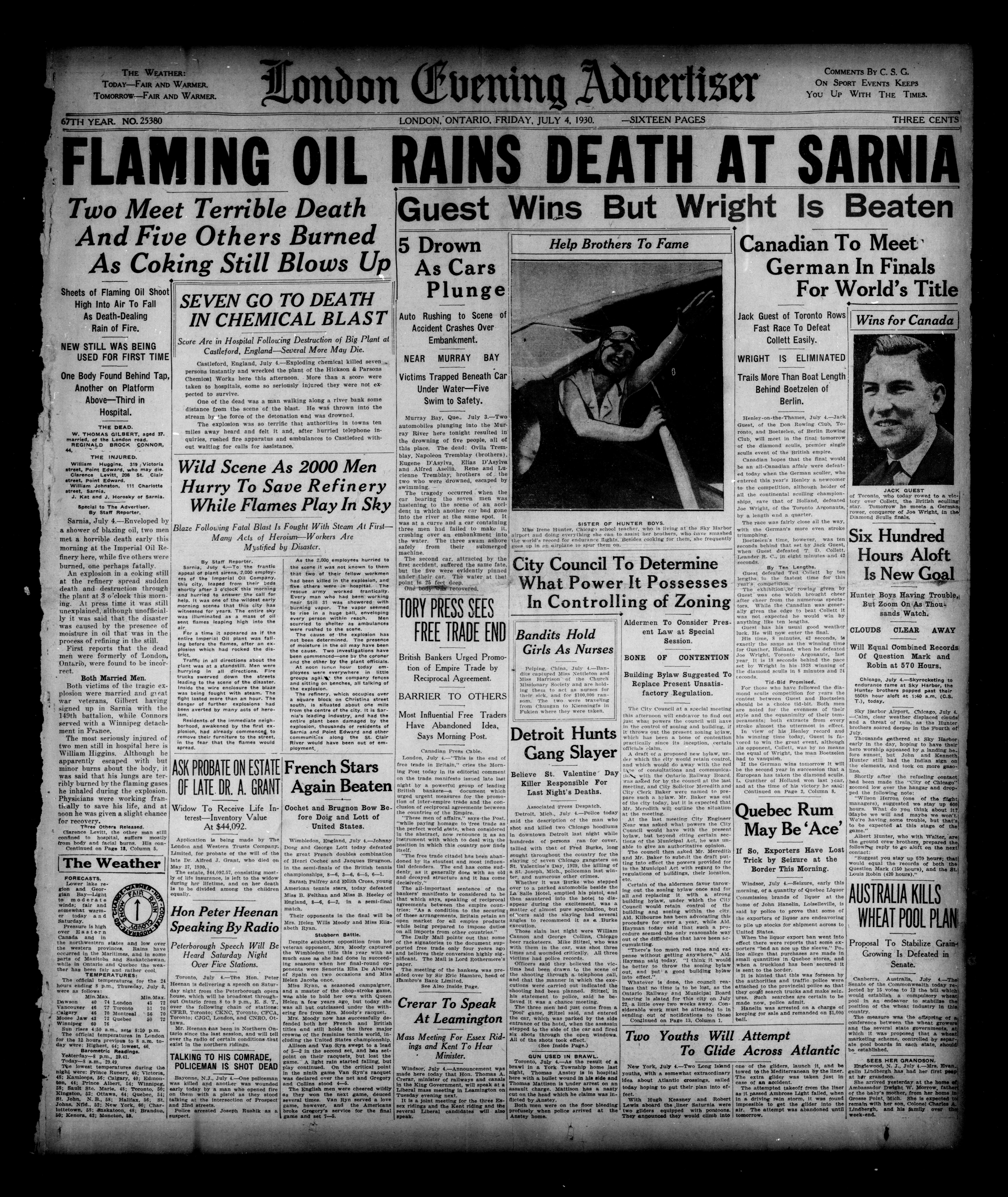 London evening advertiser : 67th Year, No. 25380 (July 4, 1930) - Adresse bibliographique