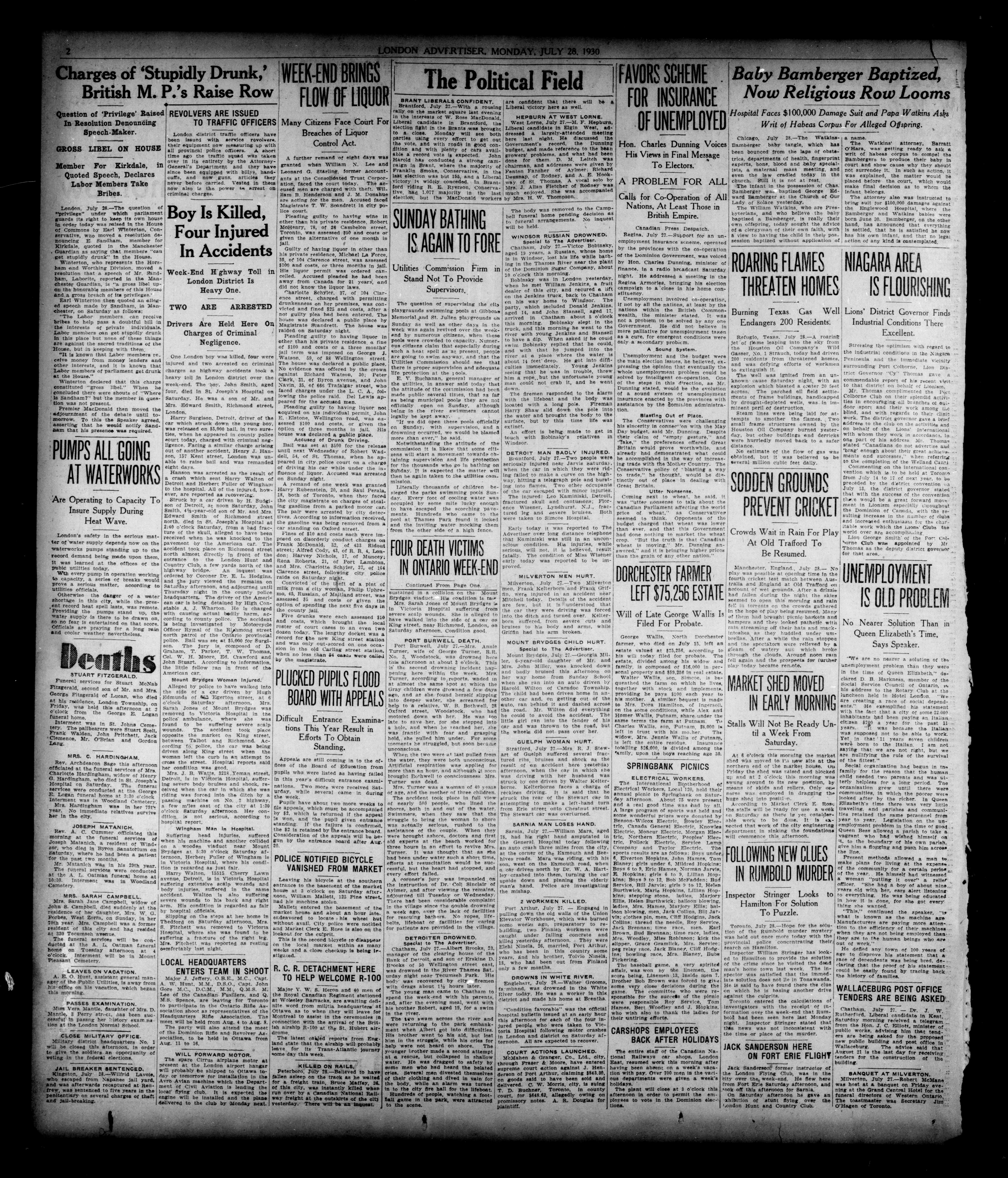 London, Ontario : London Advertiser Company, Limited, [1930]; 12 images, 0 avec recherche en texte intégral