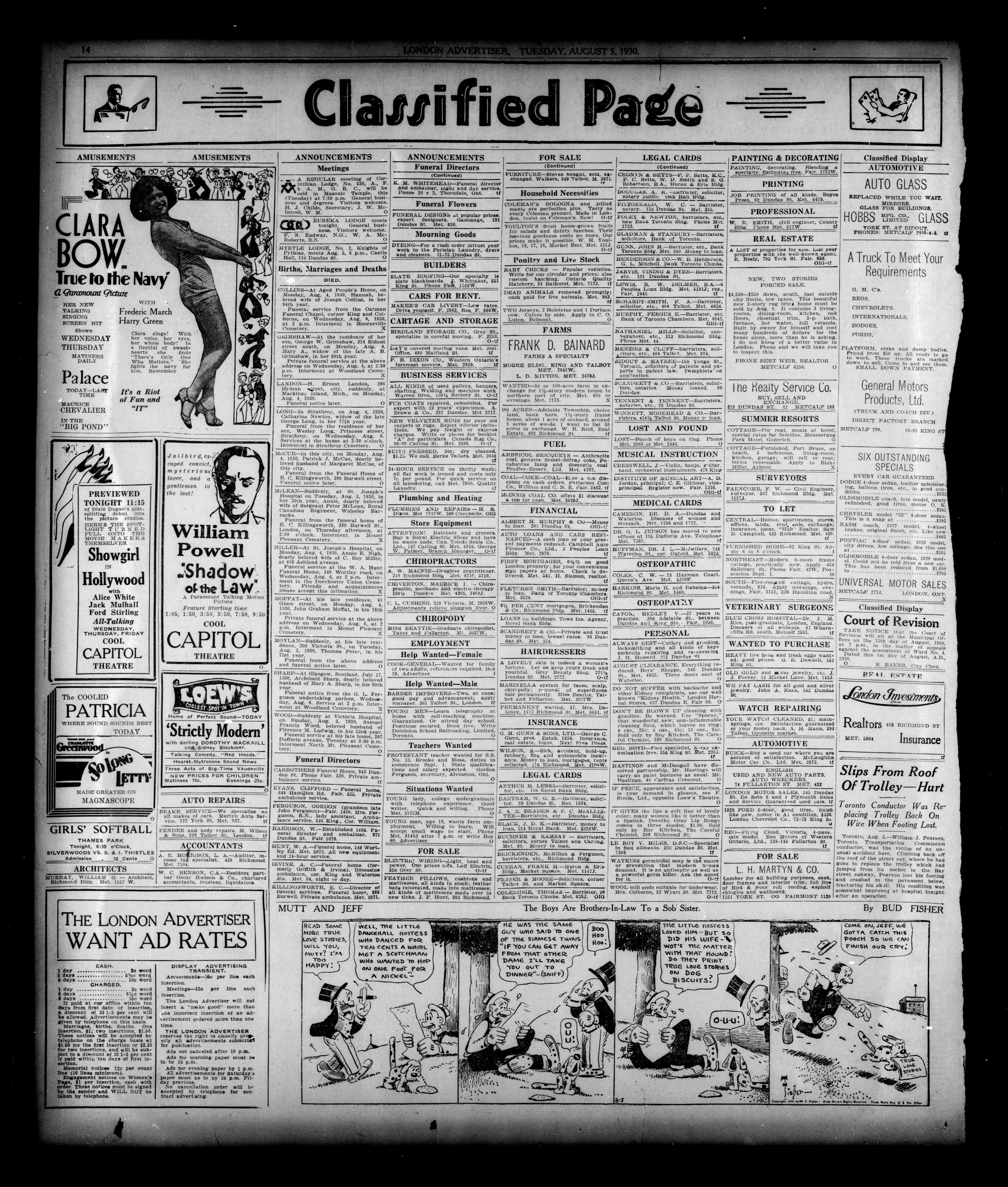London, Ontario : London Advertiser Company, Limited, [1930]; 16 images, 0 avec recherche en texte intégral
