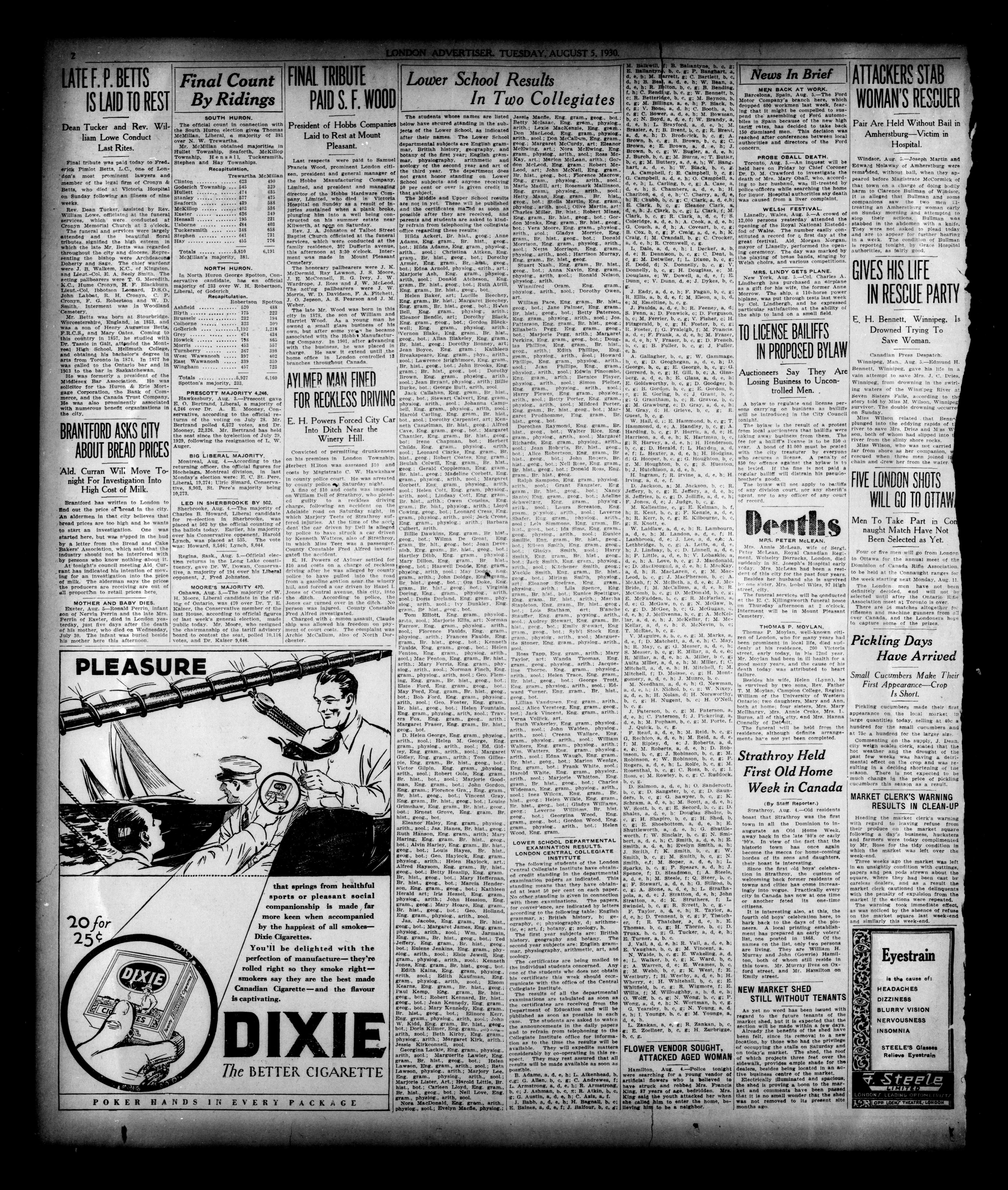 London, Ontario : London Advertiser Company, Limited, [1930]; 16 images, 0 avec recherche en texte intégral