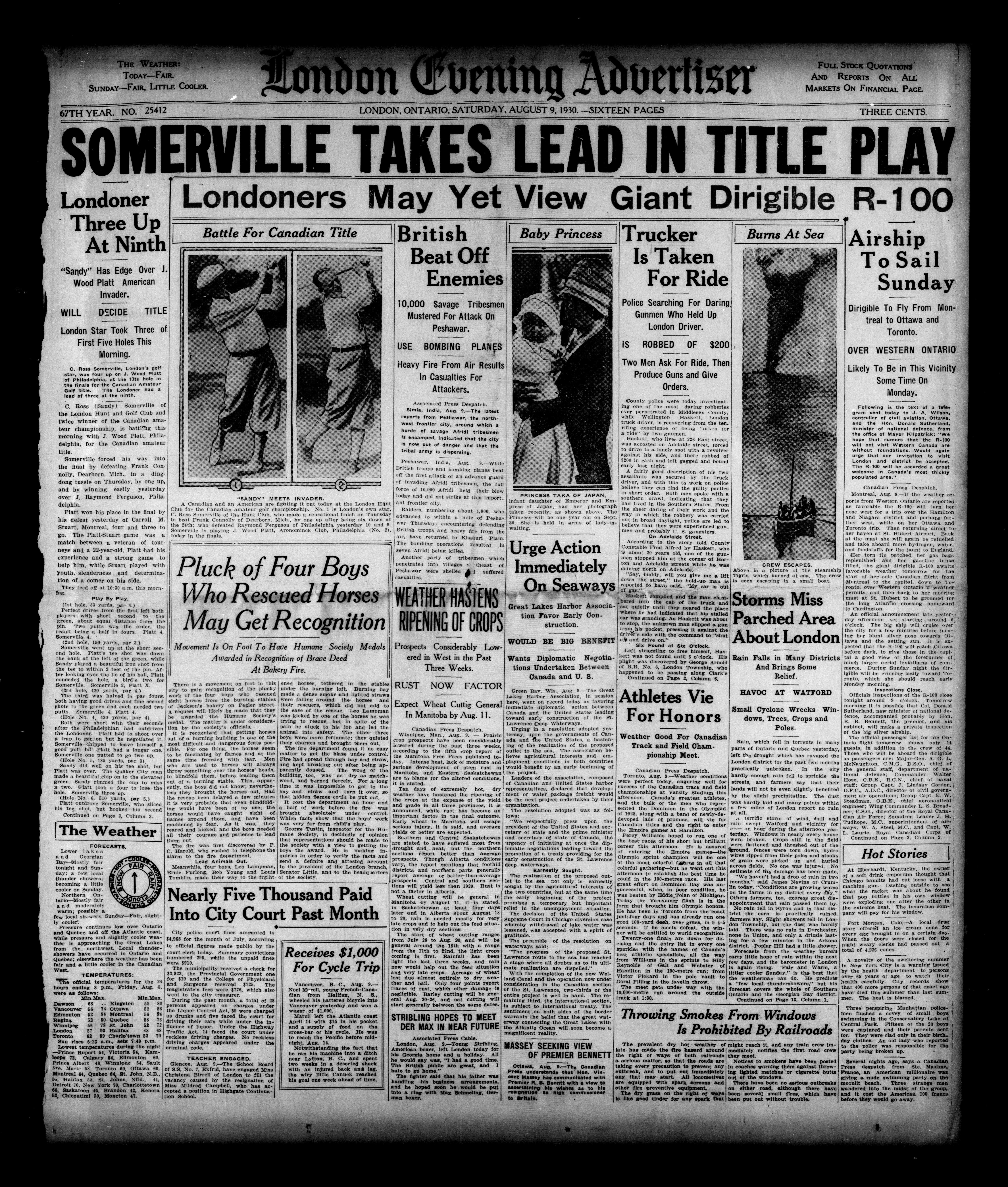 London Evening Advertiser. : London evening advertiser : 67th Year, No. 25412 (August 9, 1930)
