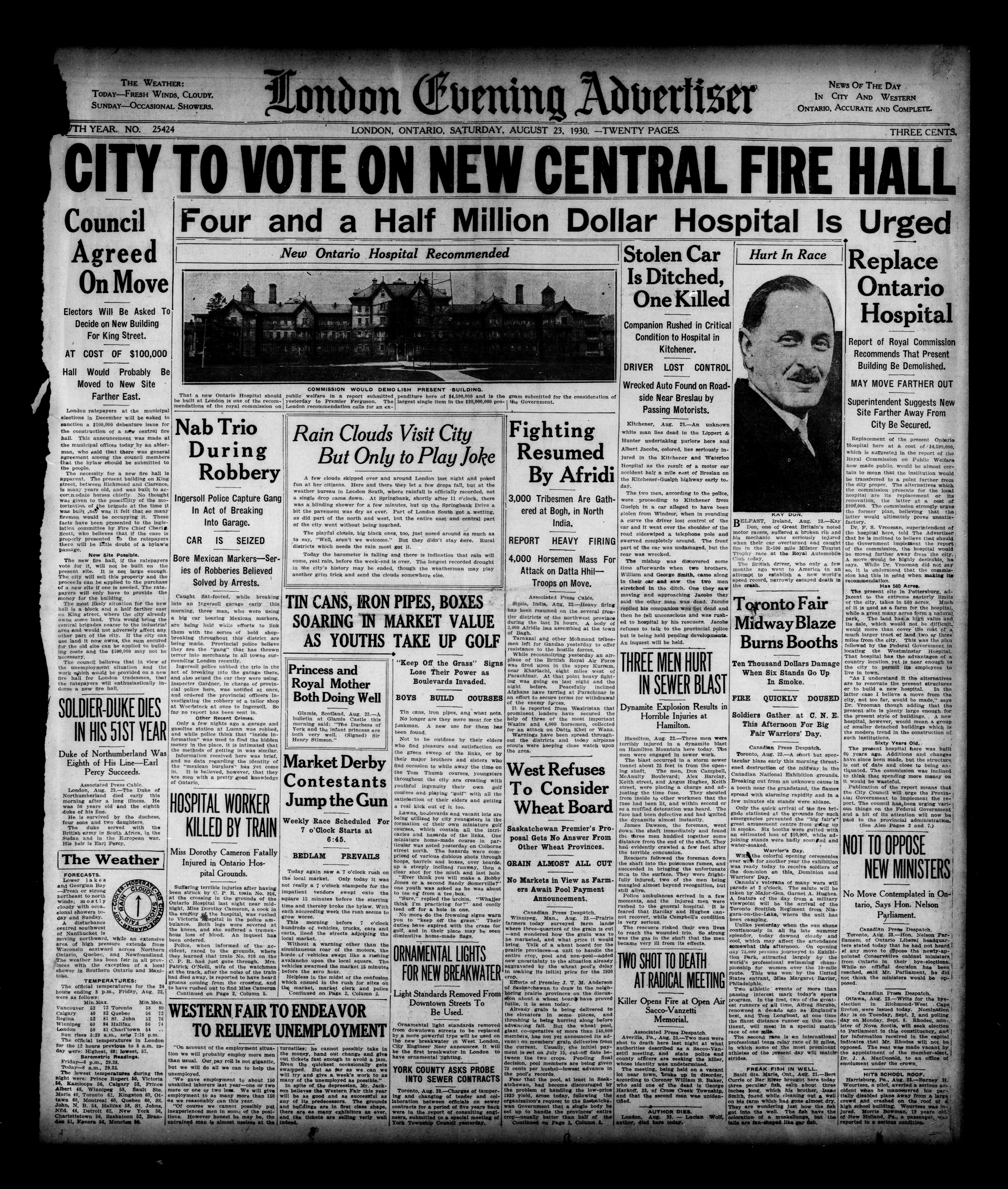 London Evening Advertiser. : London evening advertiser : [67]th Year, No. 25424 (August 23, 1930)