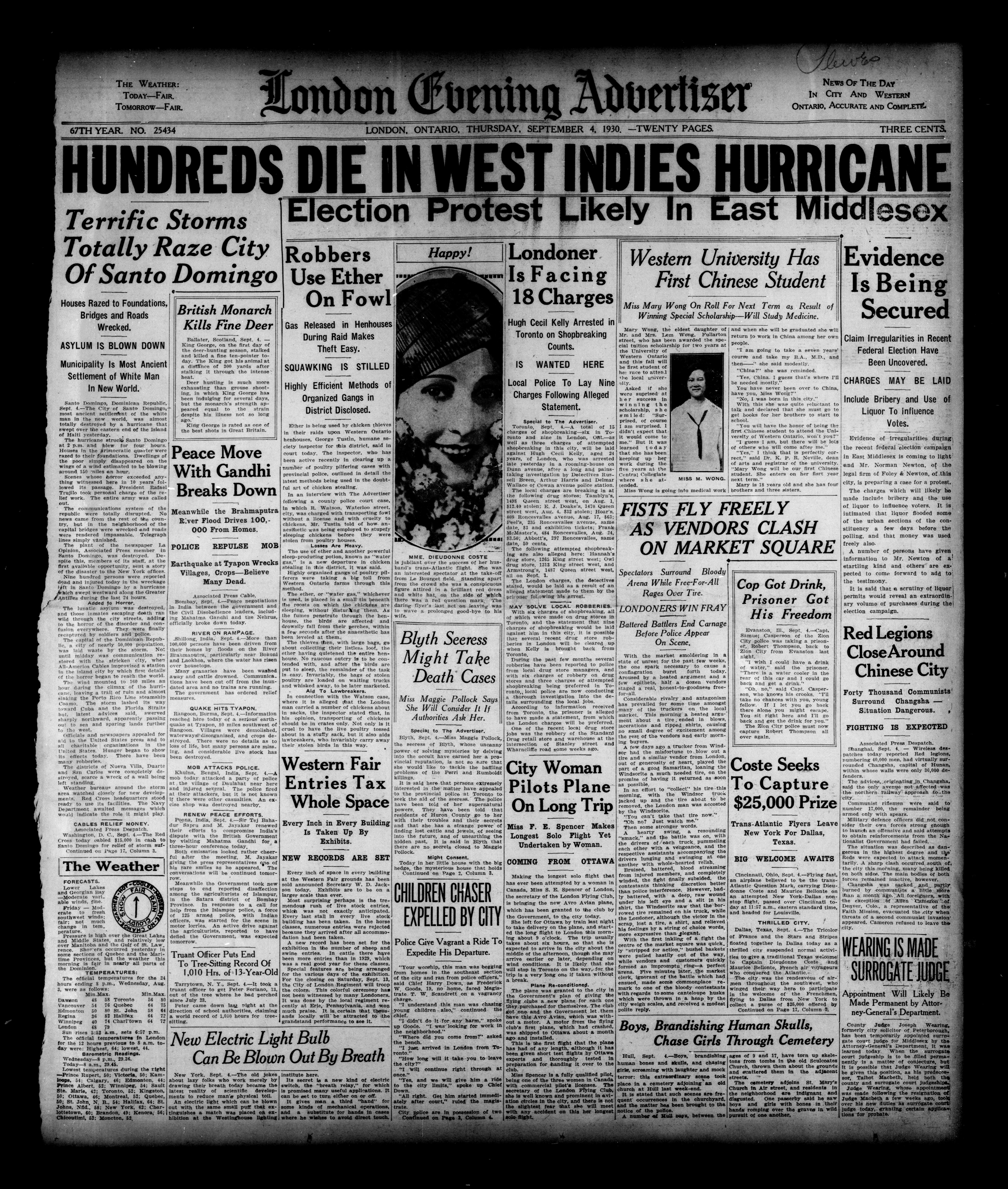 London, Ontario : London Advertiser Company, Limited, [1930]; 20 images, 0 avec recherche en texte intégral