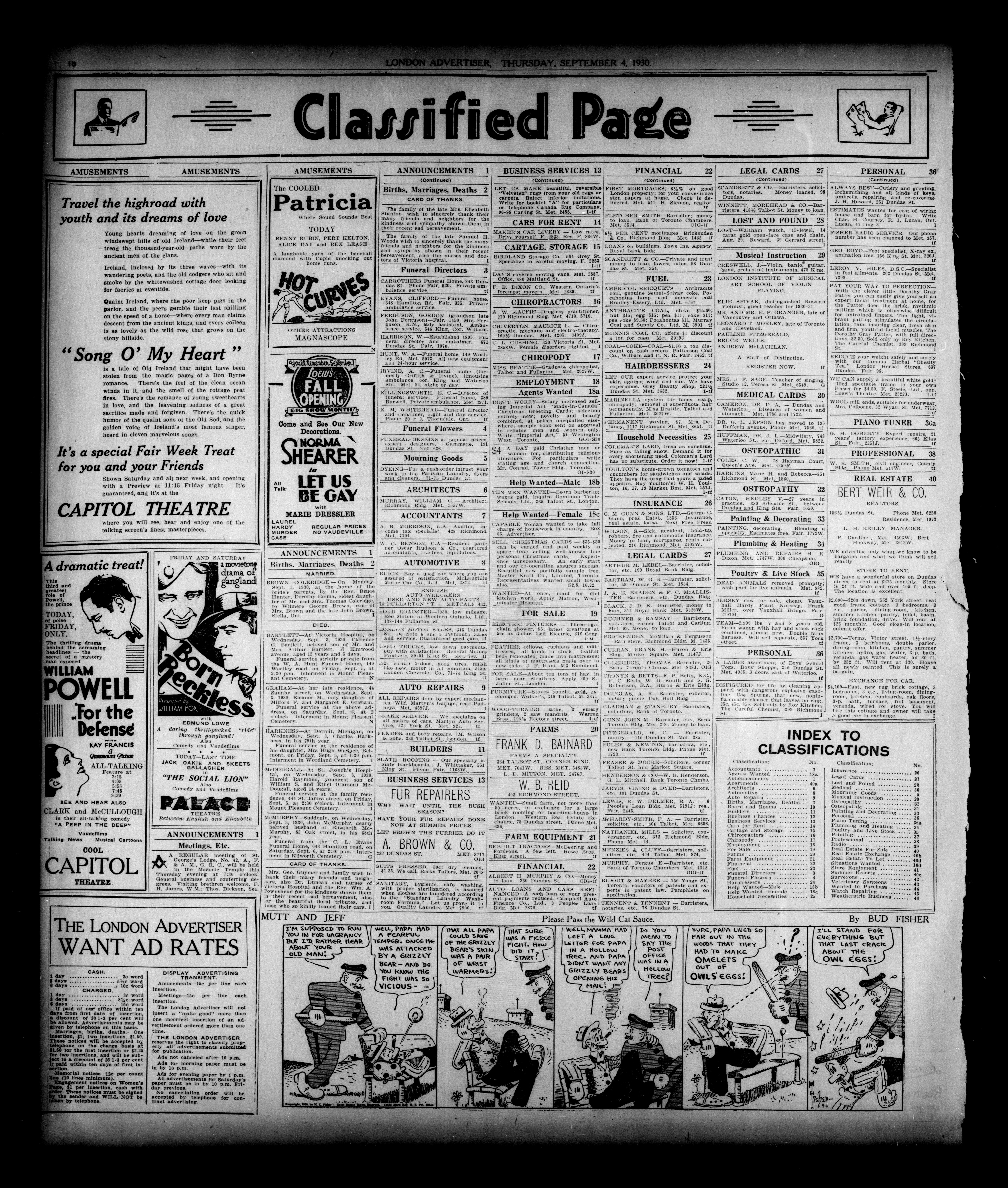 London, Ontario : London Advertiser Company, Limited, [1930]; 20 images, 0 avec recherche en texte intégral