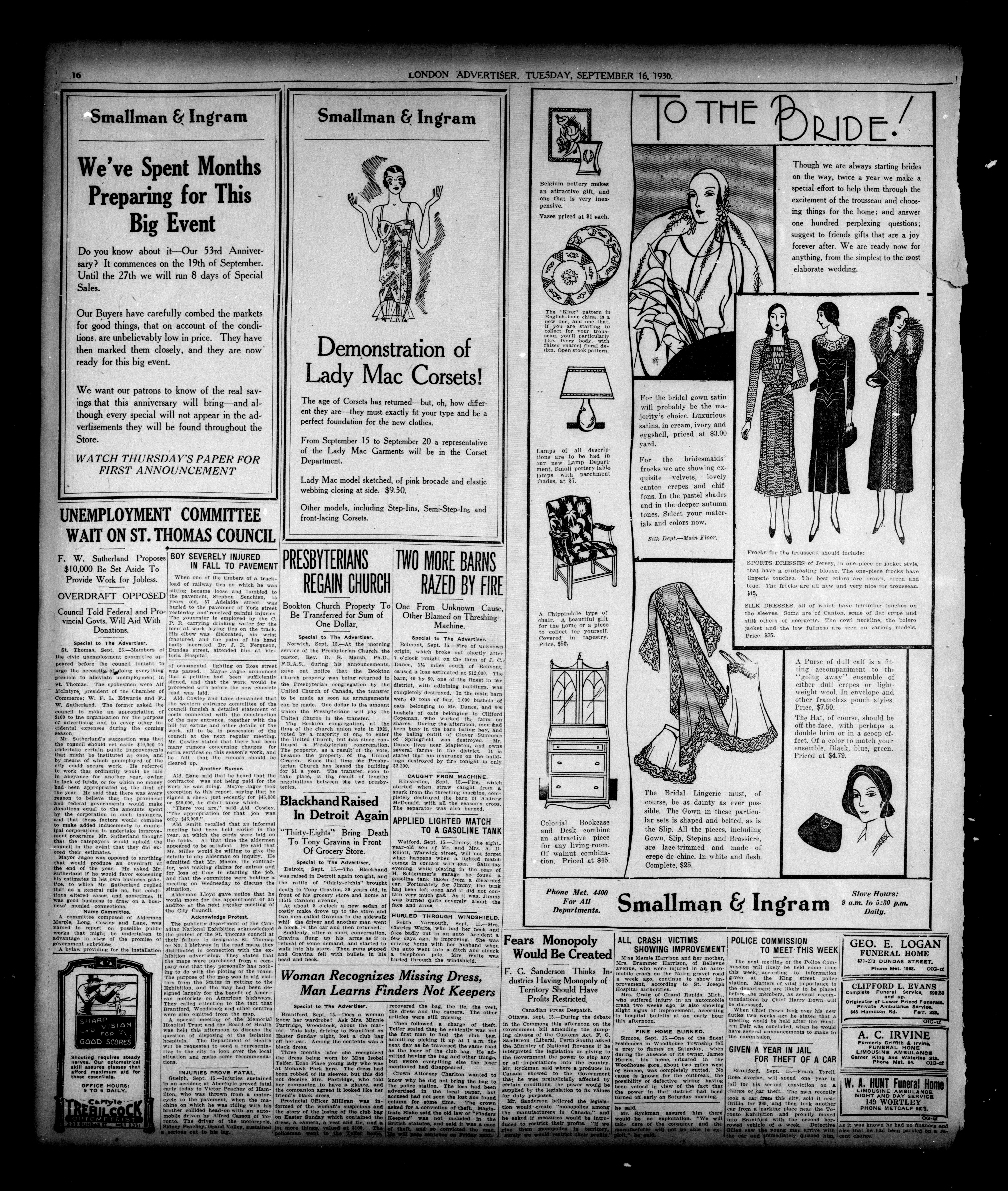 London, Ontario : London Advertiser Company, Limited, [1930]; 16 images, 0 avec recherche en texte intégral