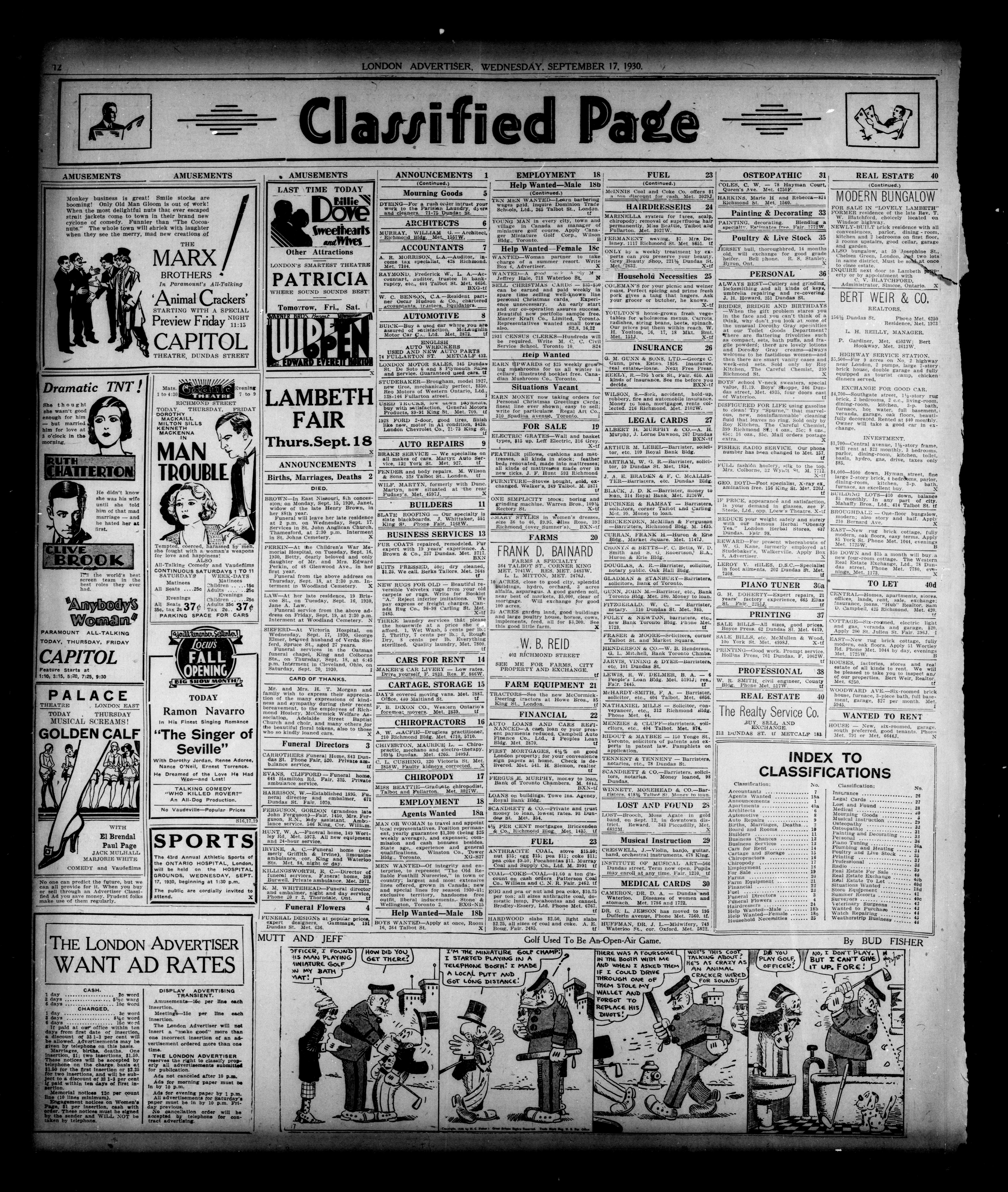 London, Ontario : London Advertiser Company, Limited, [1930]; 14 images, 0 avec recherche en texte intégral