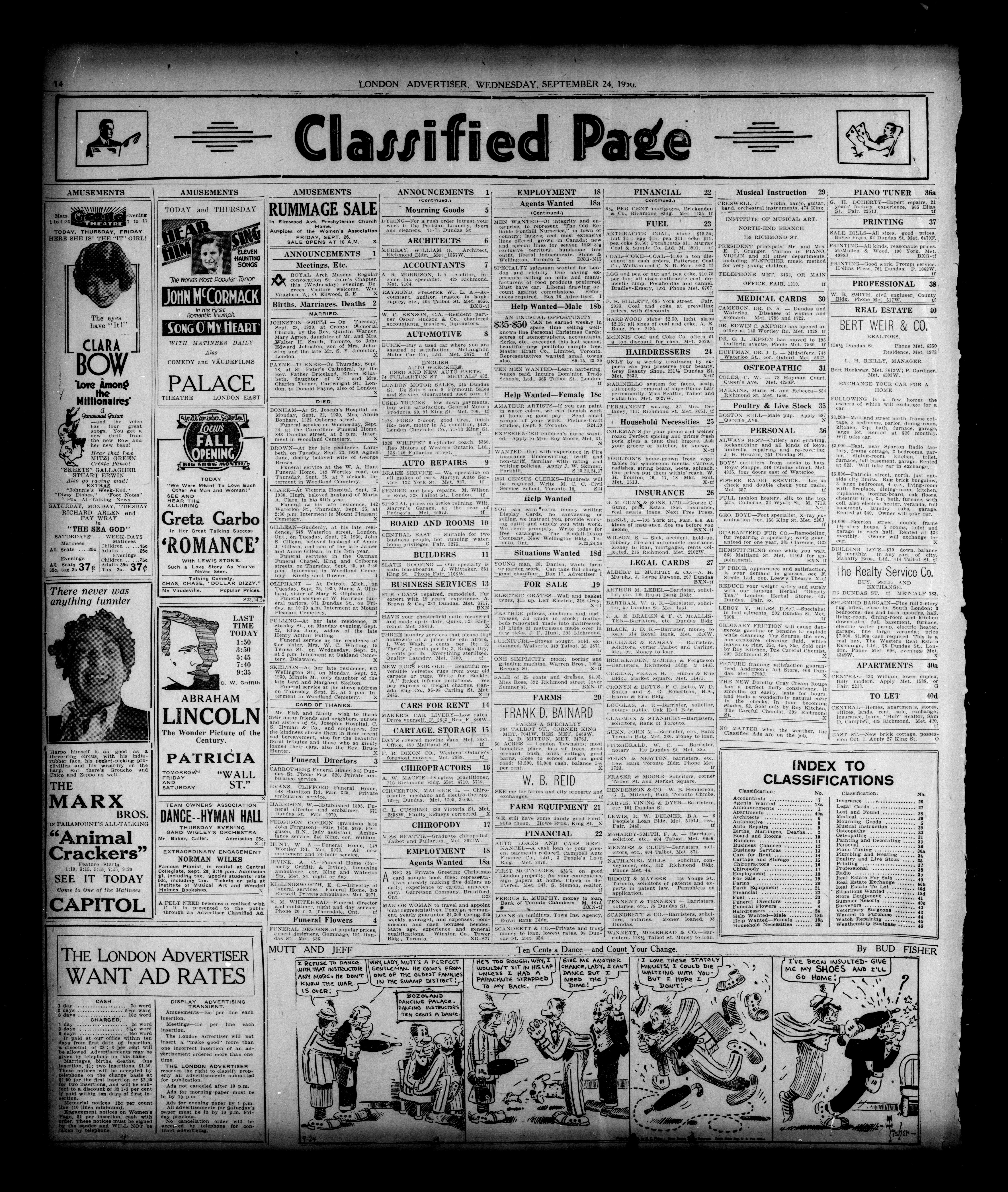 London, Ontario : London Advertiser Company, Limited, [1930]; 16 images, 0 avec recherche en texte intégral