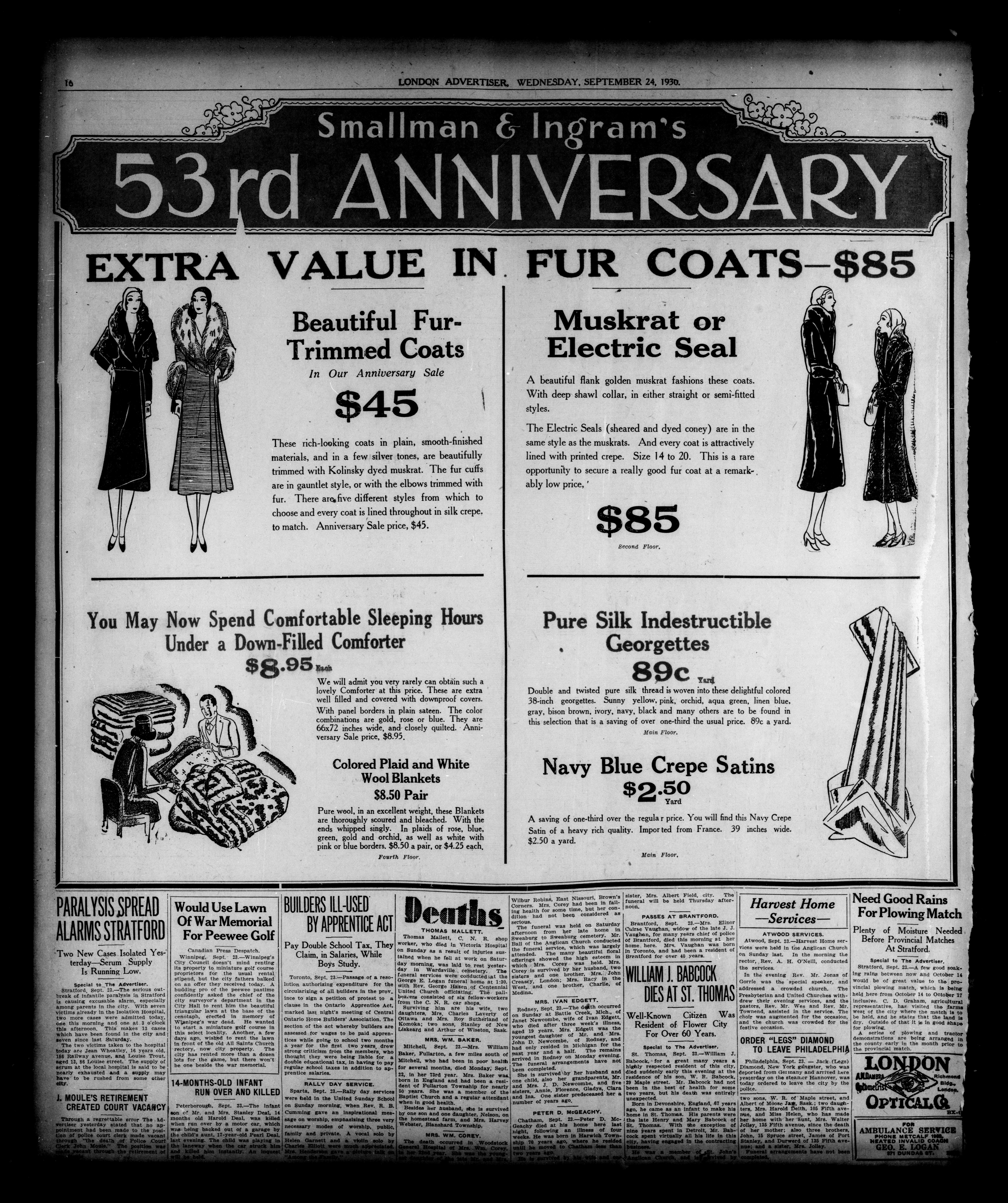 London, Ontario : London Advertiser Company, Limited, [1930]; 16 images, 0 avec recherche en texte intégral