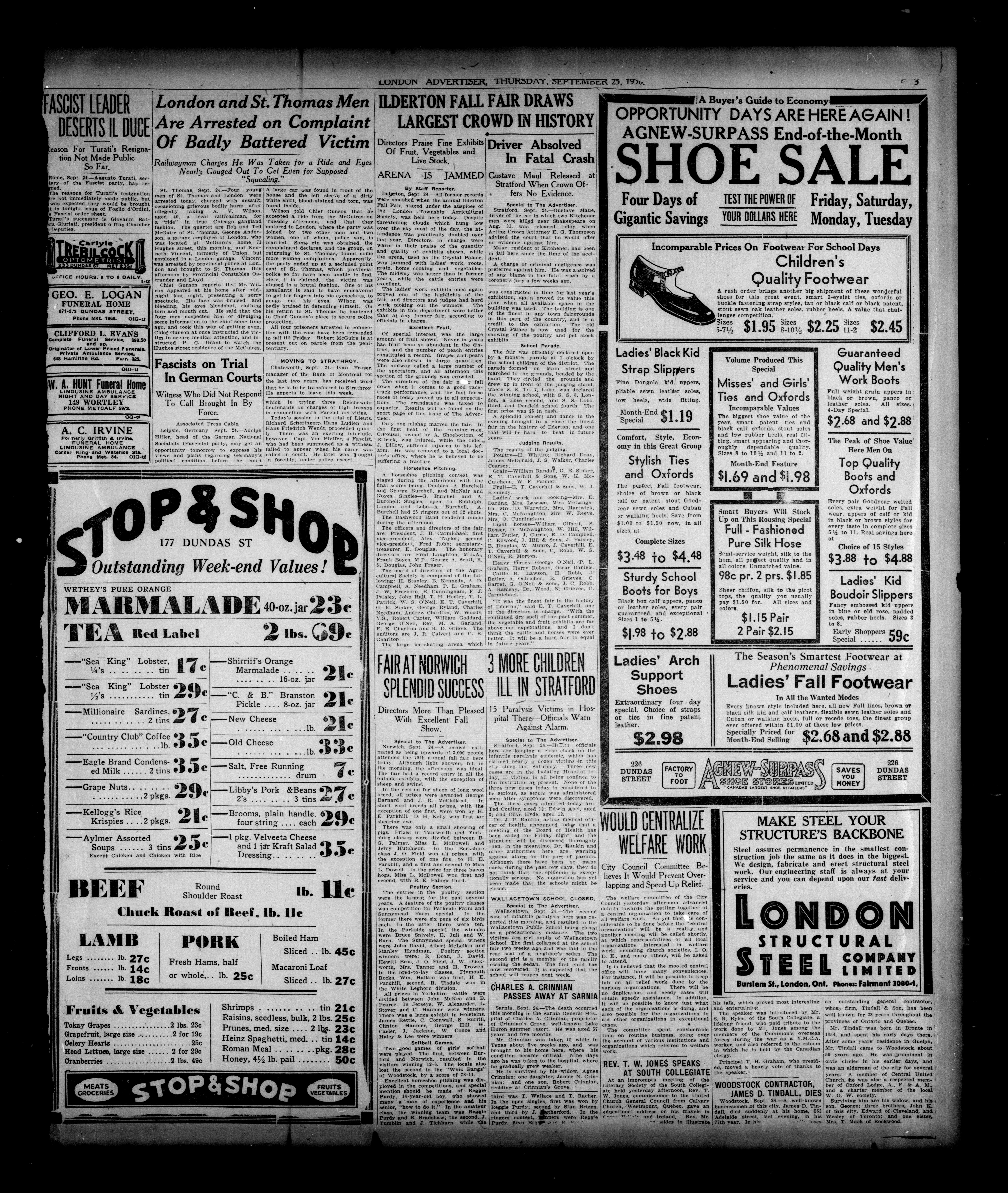 London Evening Advertiser. : London evening advertiser : 67th Year, No. 25452 (September 25, 1930)