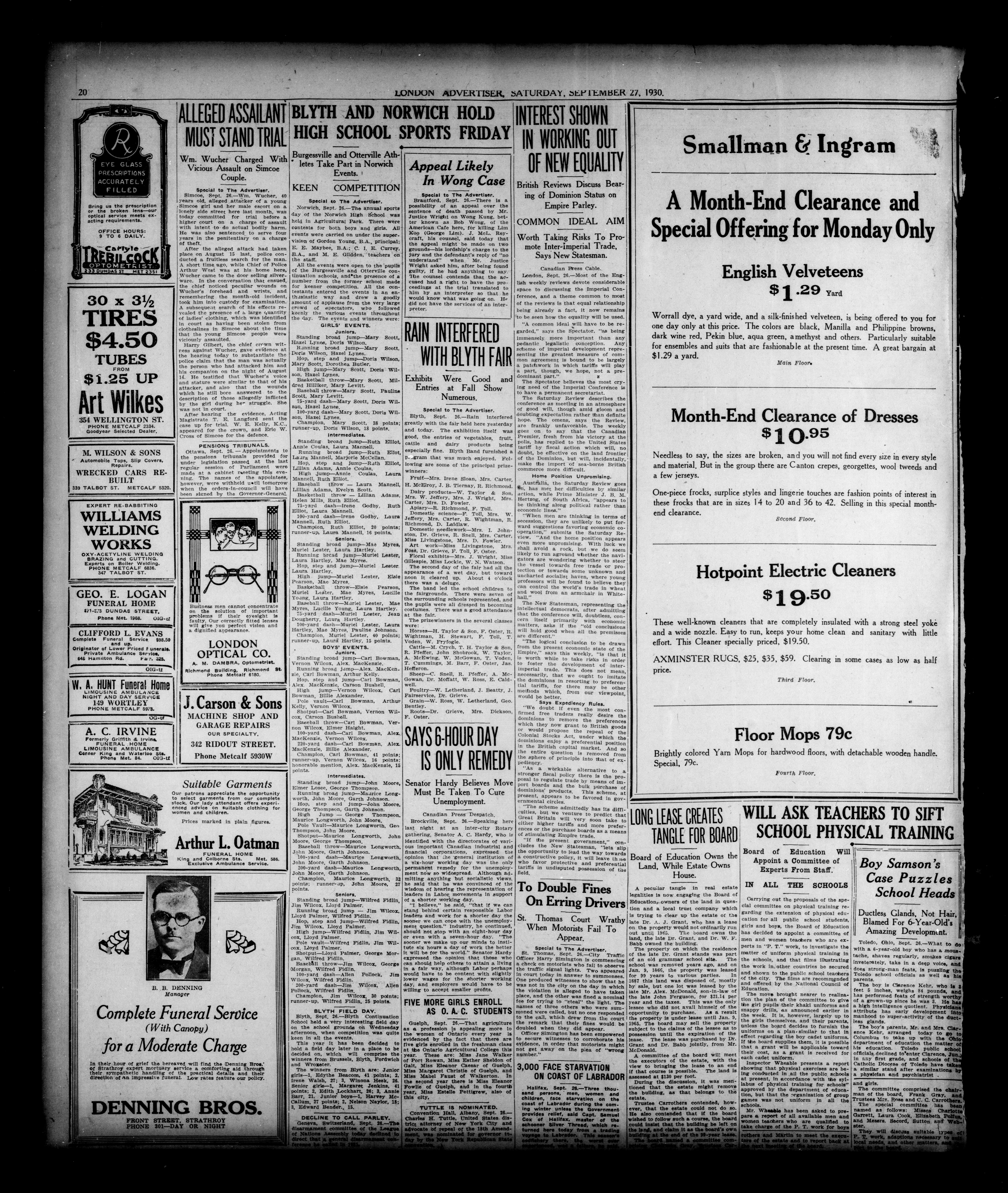 London, Ontario : London Advertiser Company, Limited, [1930]; 20 images, 0 avec recherche en texte intégral