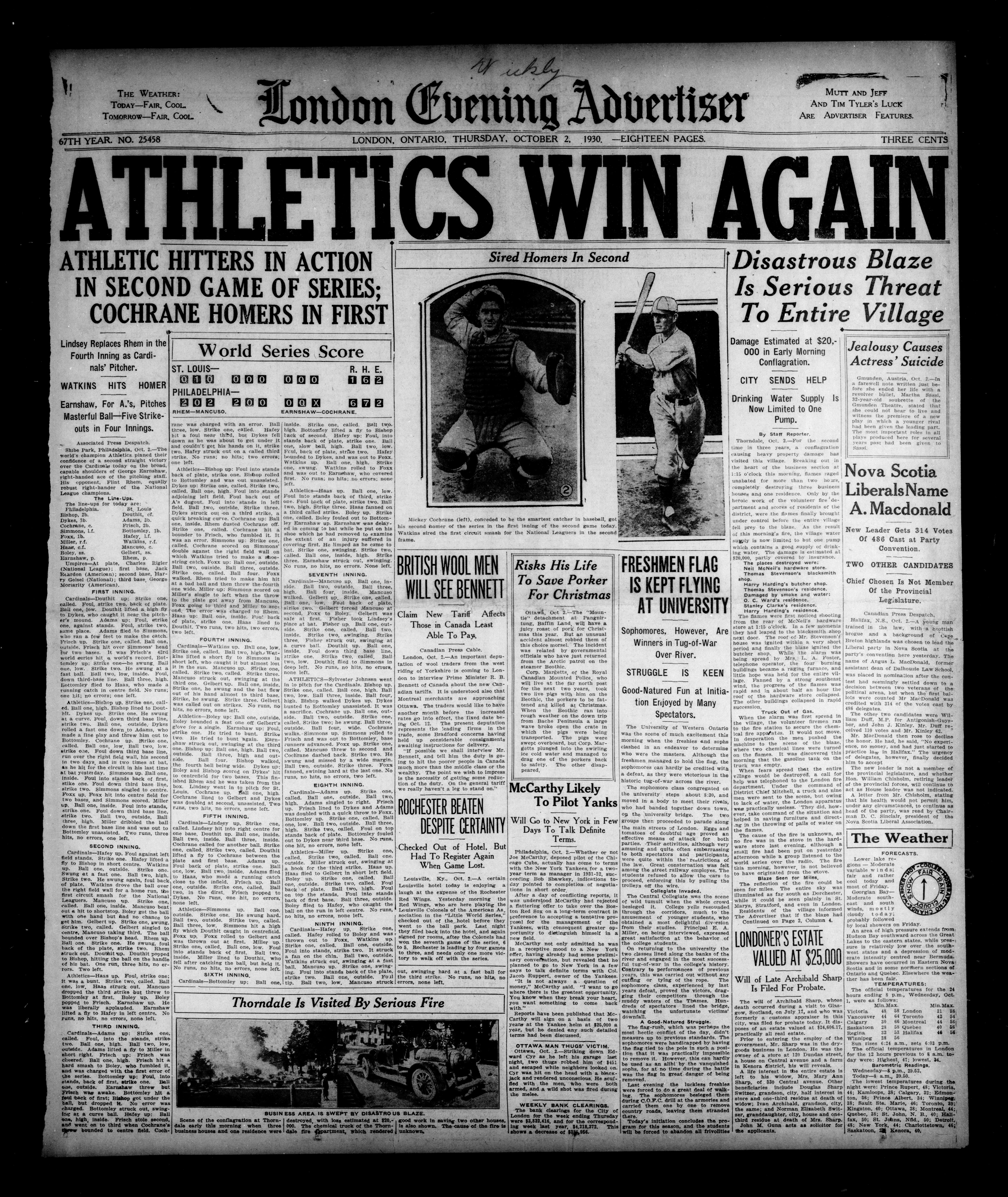 London evening advertiser : 67th Year, No. 25458 (October 2, 1930) - Adresse bibliographique