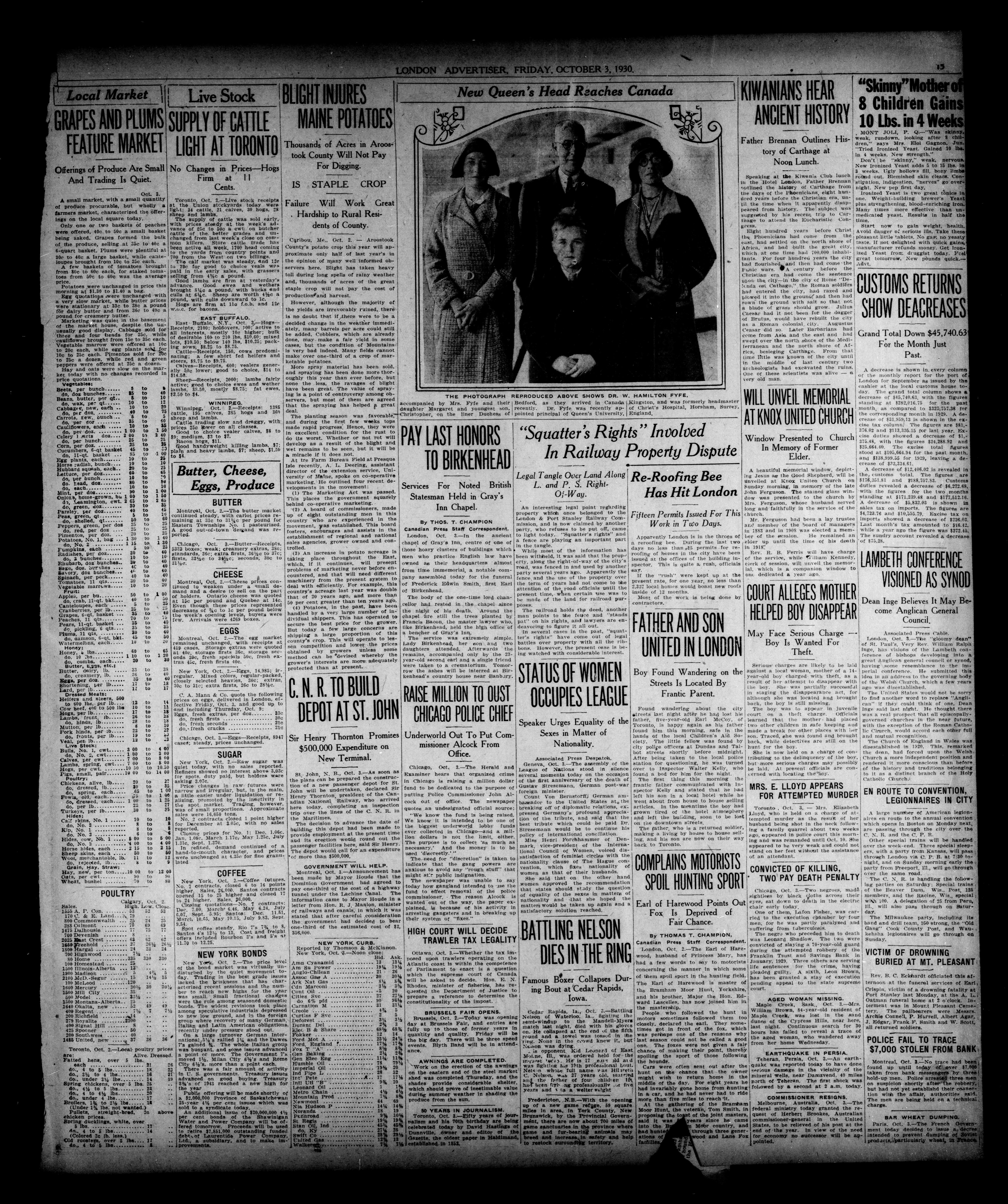 London Evening Advertiser. : London evening advertiser : 67th Year, No. 25459 (October 3, 1930)