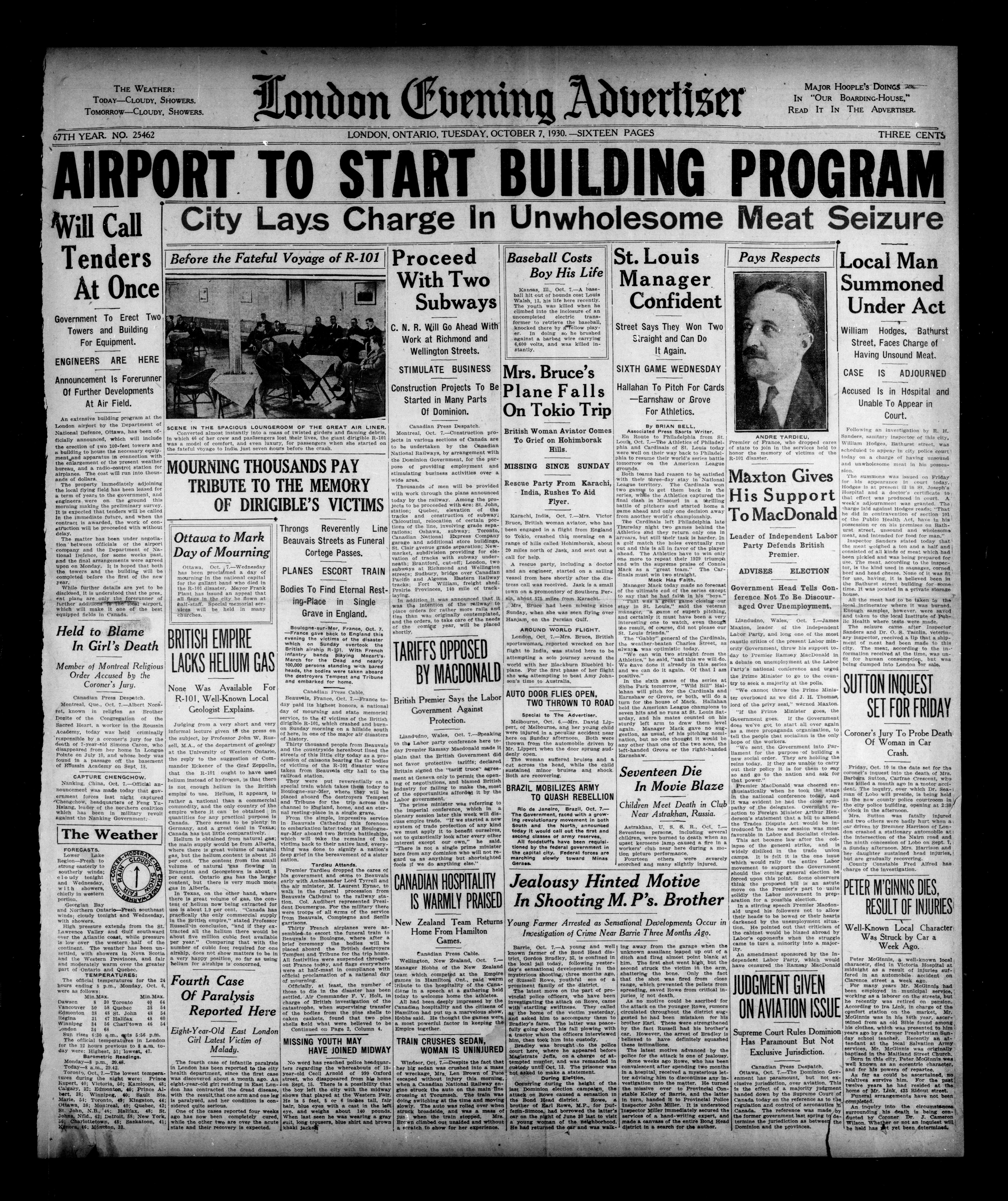 London Evening Advertiser. : London evening advertiser : 67th Year, No. 25462 (October 7, 1930)