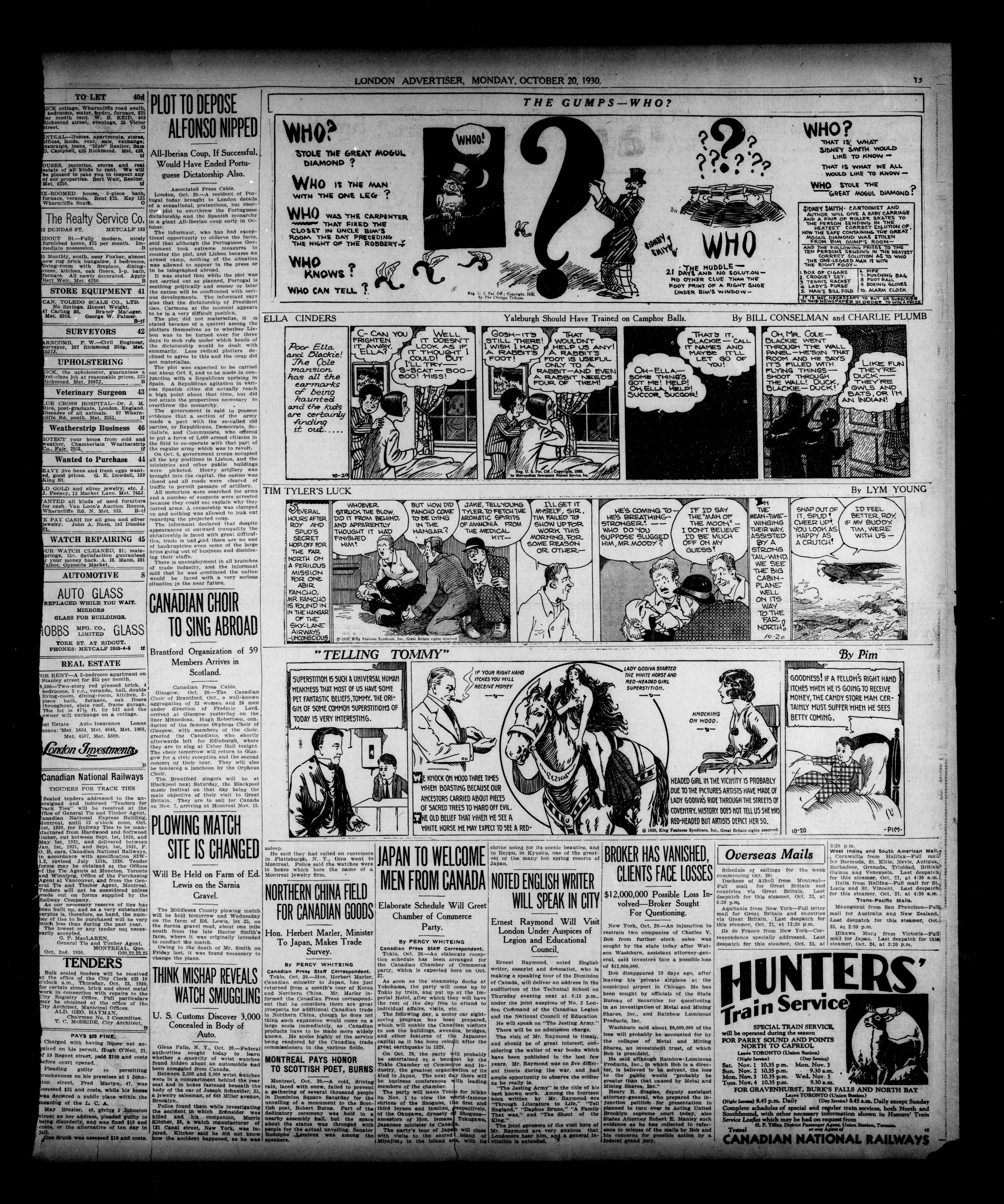Aide London, Ontario : London Advertiser Company, Limited, [1930]; 14 images, 0 avec recherche en texte intégral