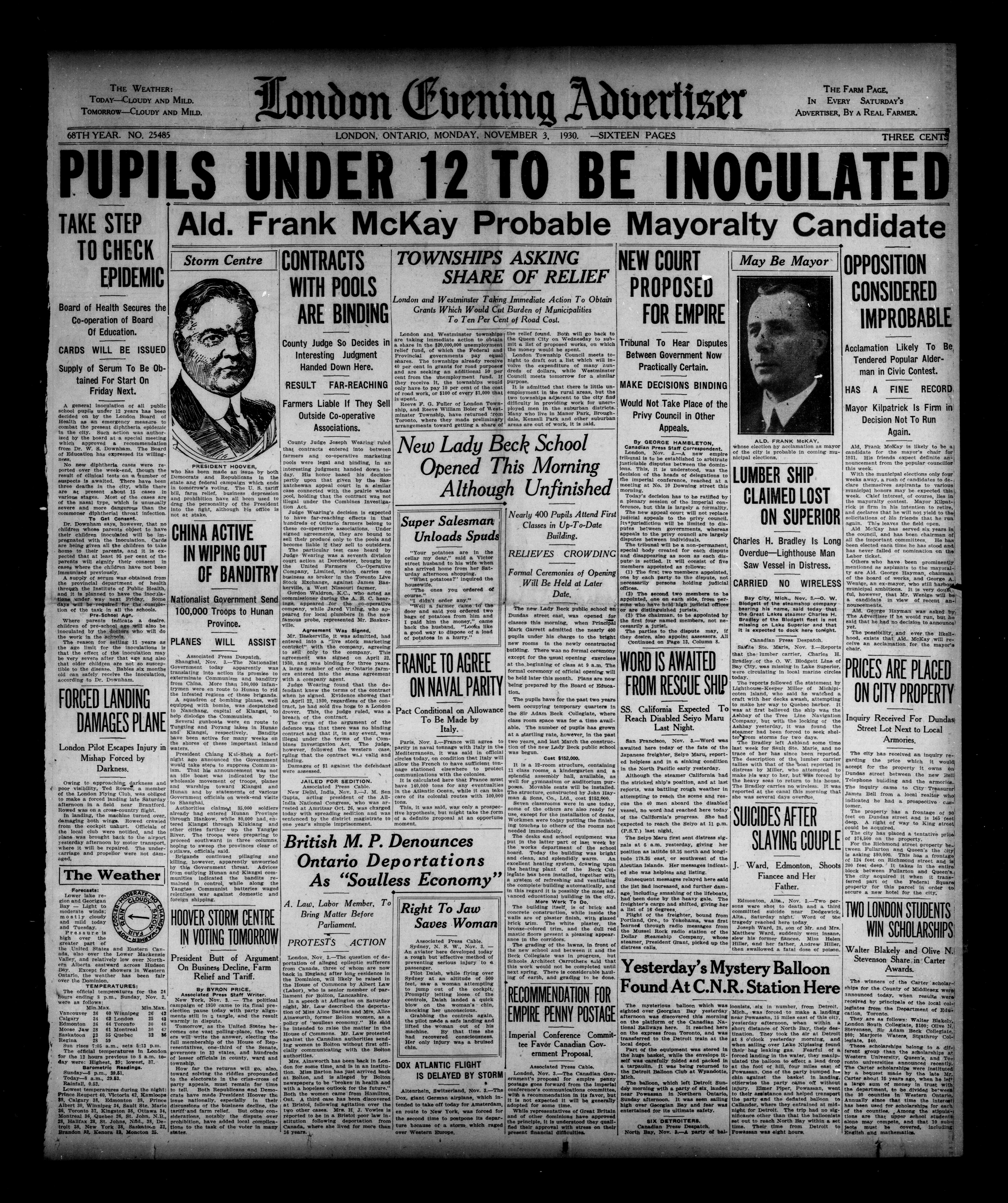 London, Ontario : London Advertiser Company, Limited, [1930]; 16 images, 0 avec recherche en texte intégral