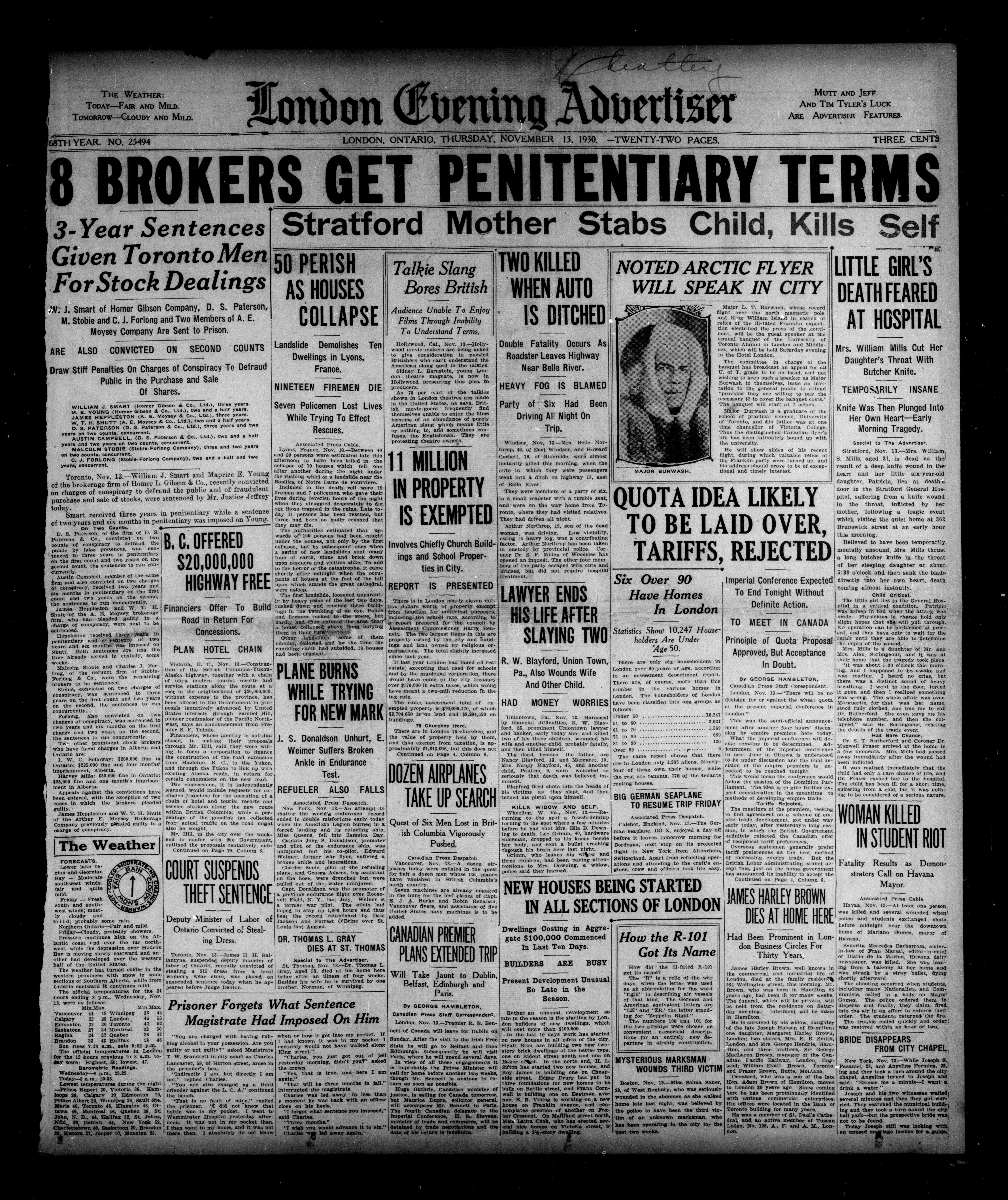 London Evening Advertiser. : London evening advertiser : 68th Year, No. 25494 (November 13, 1930)