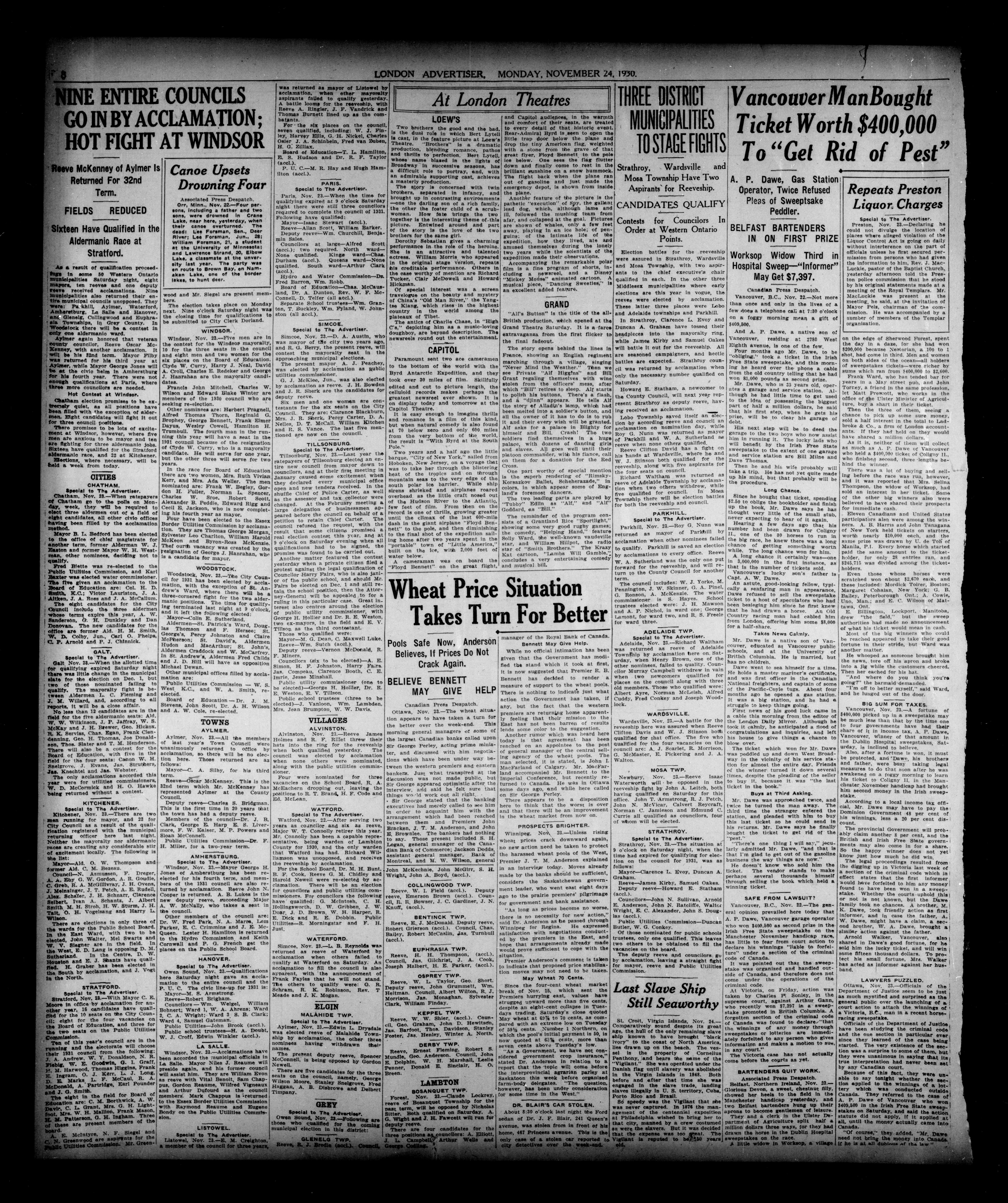 London, Ontario : London Advertiser Company, Limited, [1930]; 16 images, 0 avec recherche en texte intégral