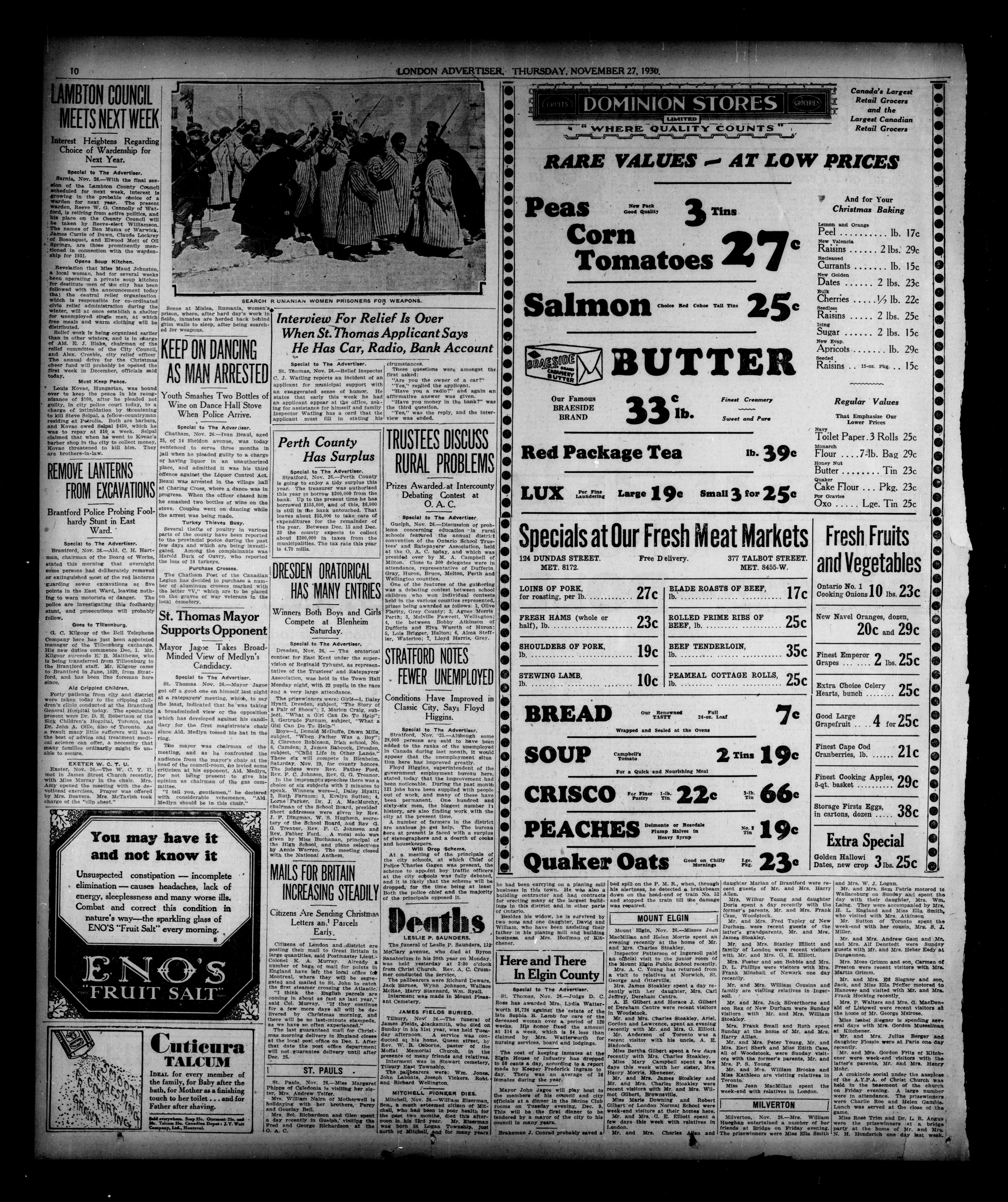 London, Ontario : London Advertiser Company, Limited, [1930]; 18 images, 0 avec recherche en texte intégral