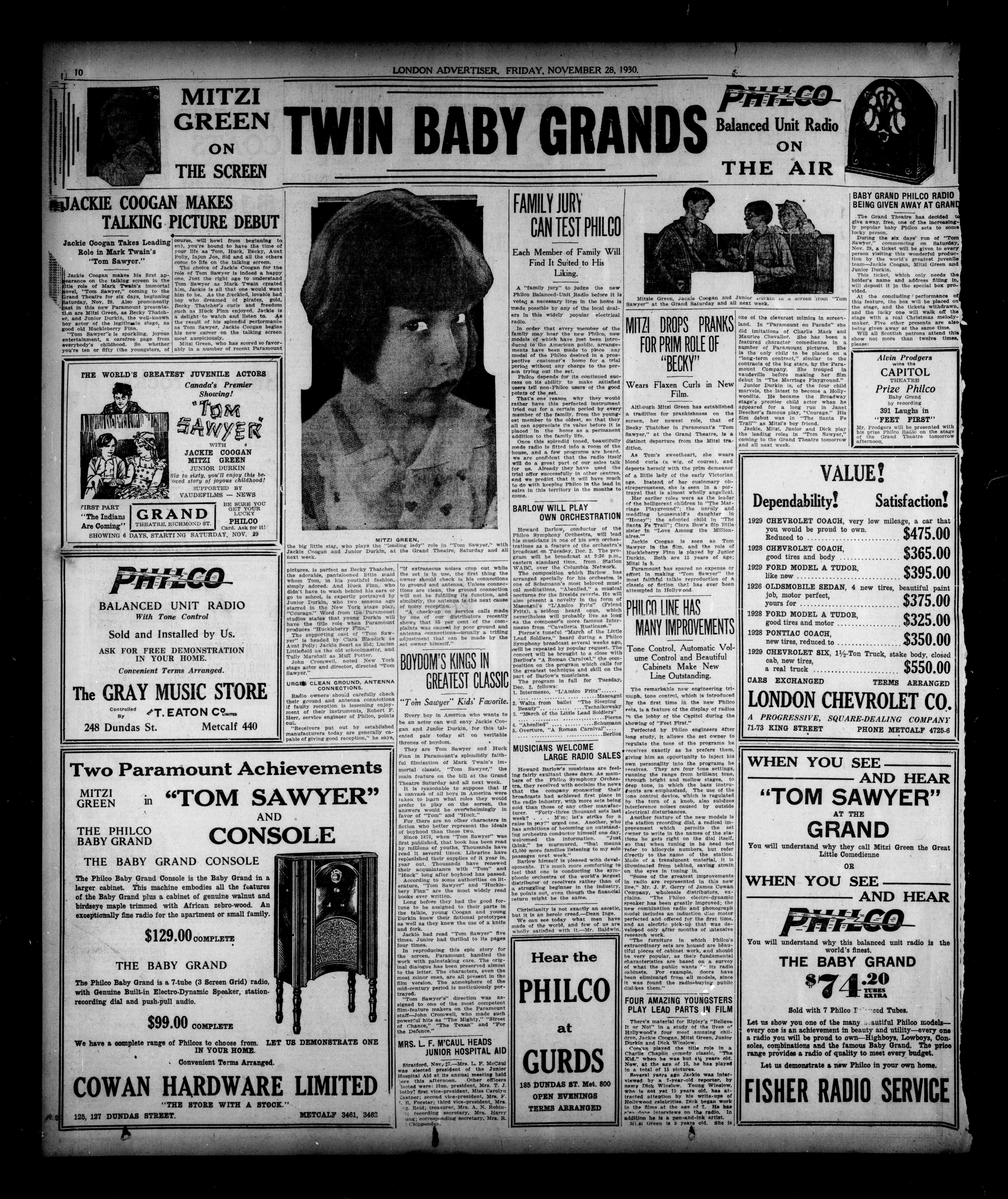 London, Ontario : London Advertiser Company, Limited, [1930]; 22 images, 0 avec recherche en texte intégral