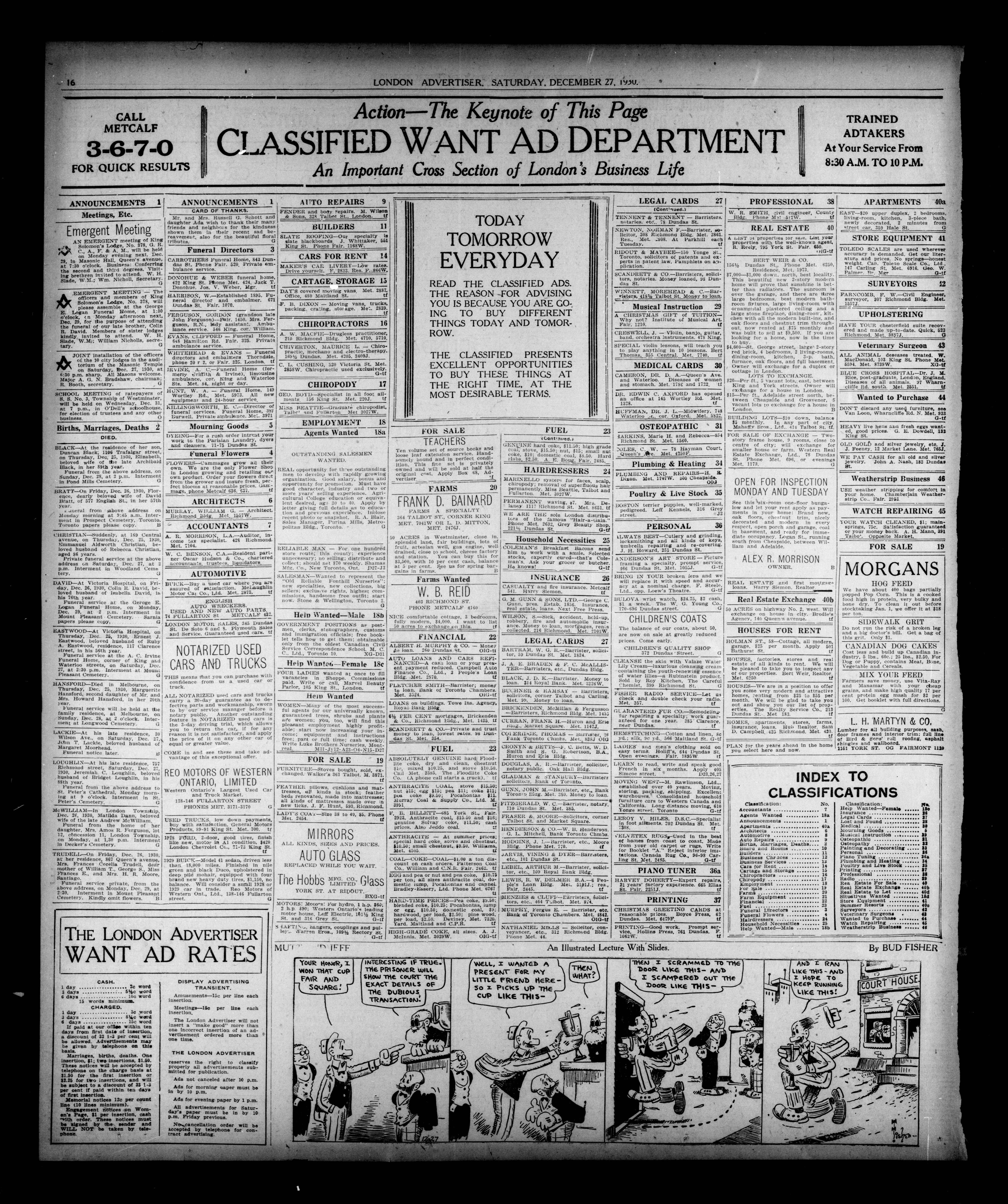 Aide London, Ontario : London Advertiser Company, Limited, [1930]; 18 images, 0 avec recherche en texte intégral