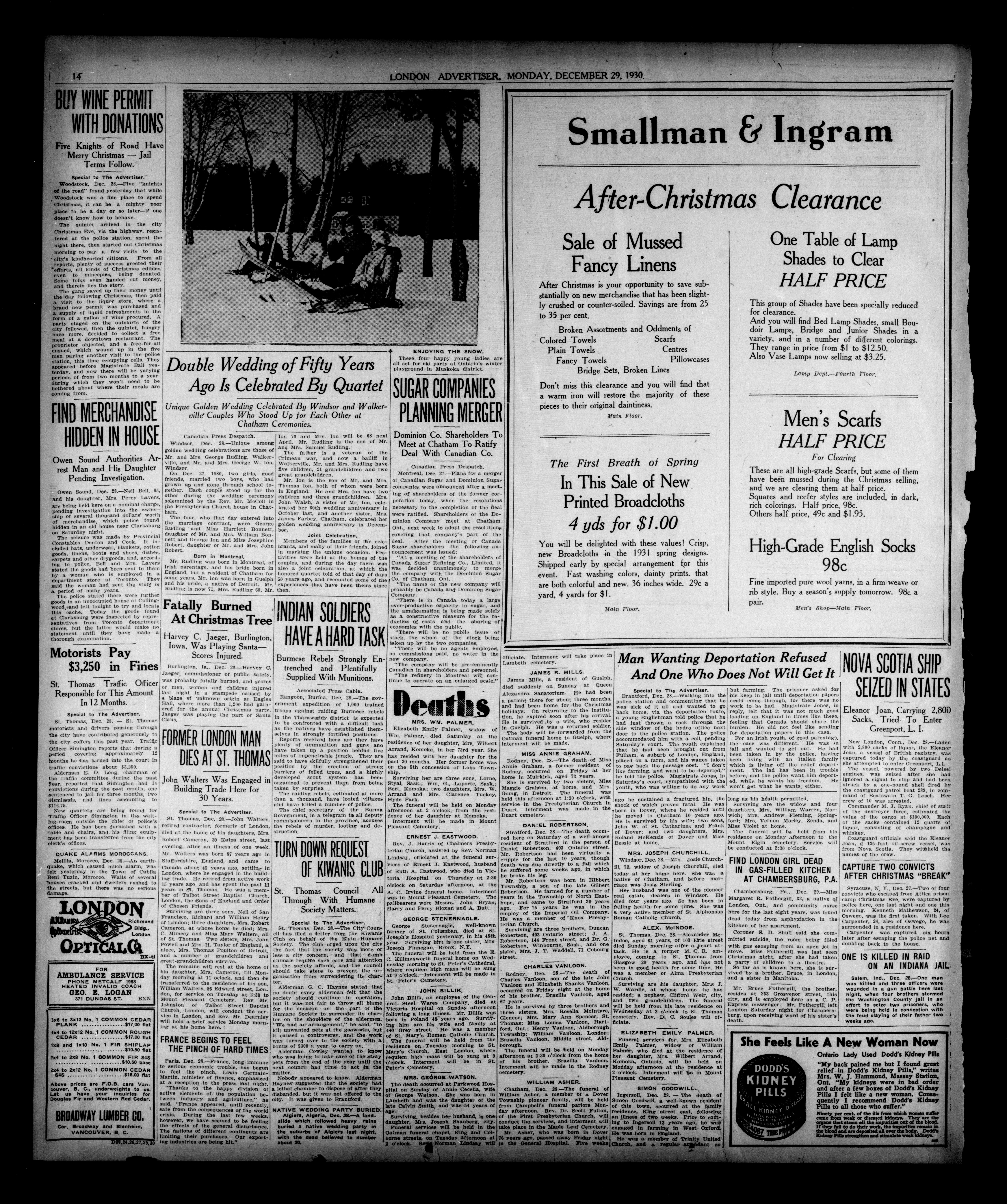 London, Ontario : London Advertiser Company, Limited, [1930]; 12 images, 0 avec recherche en texte intégral