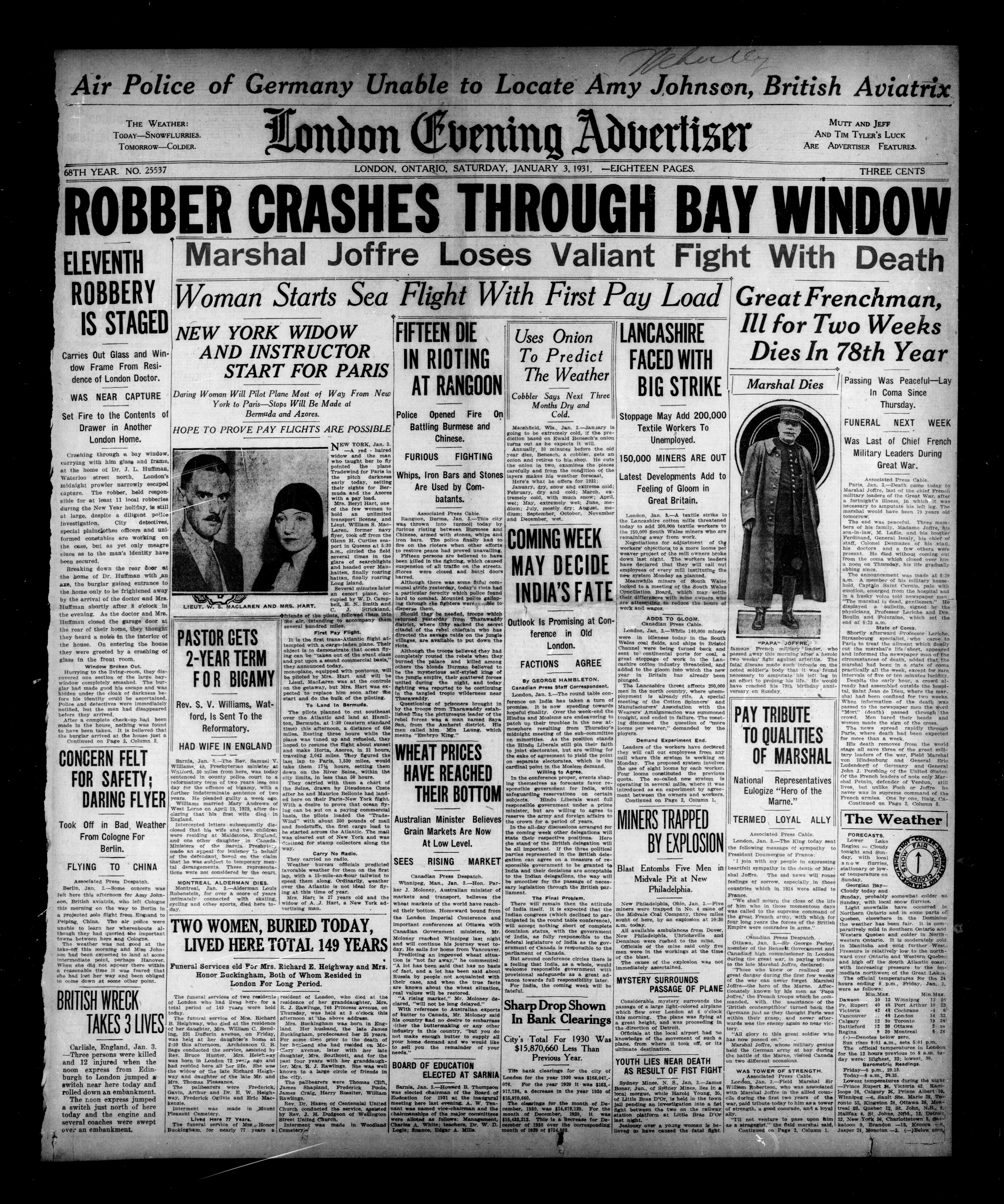 London evening advertiser : 68th Year, No. 25537 (January 3, 1931) - Adresse bibliographique