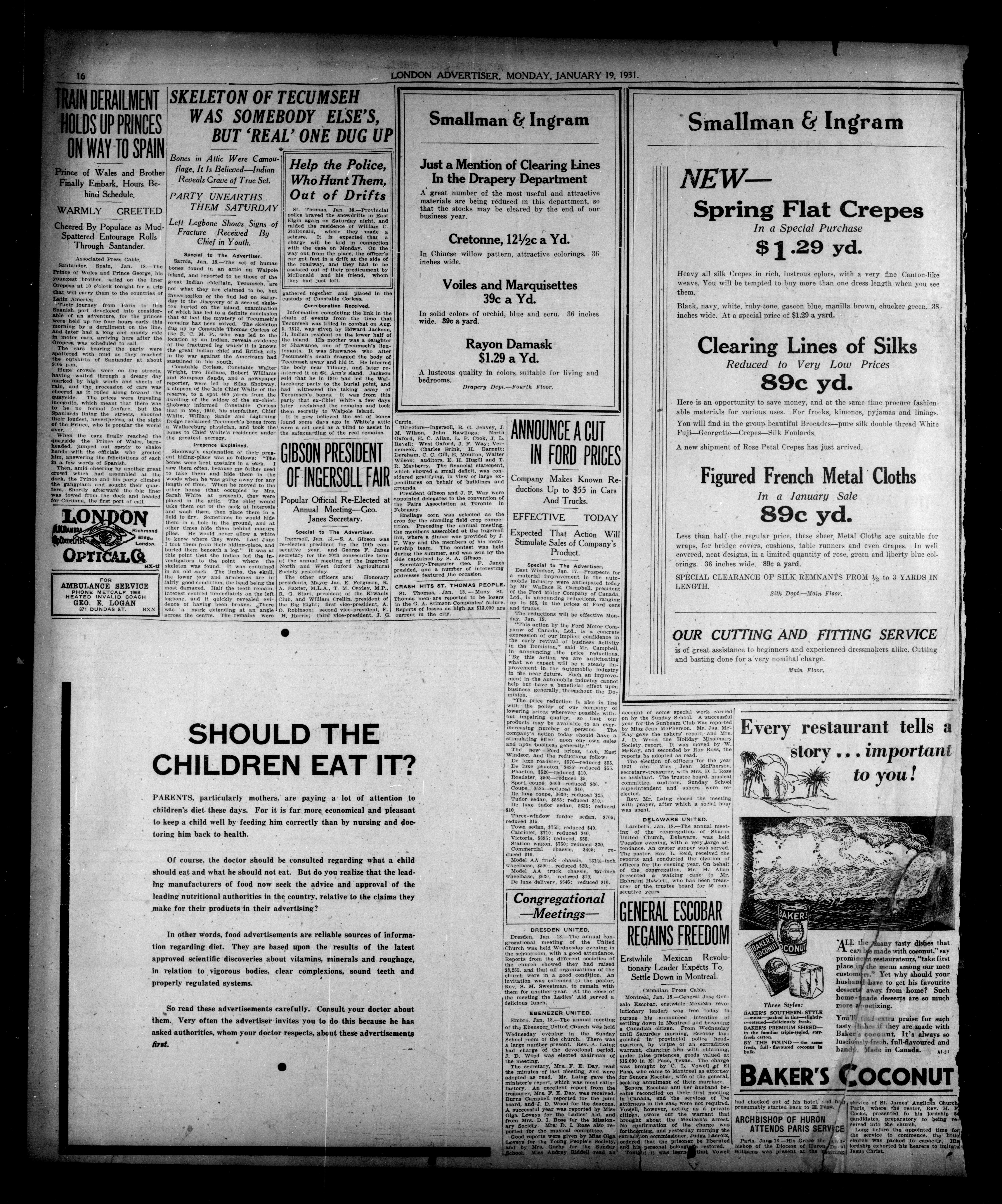 Aide London, Ontario : London Advertiser Company, Limited, [1931]; 16 images, 0 avec recherche en texte intégral