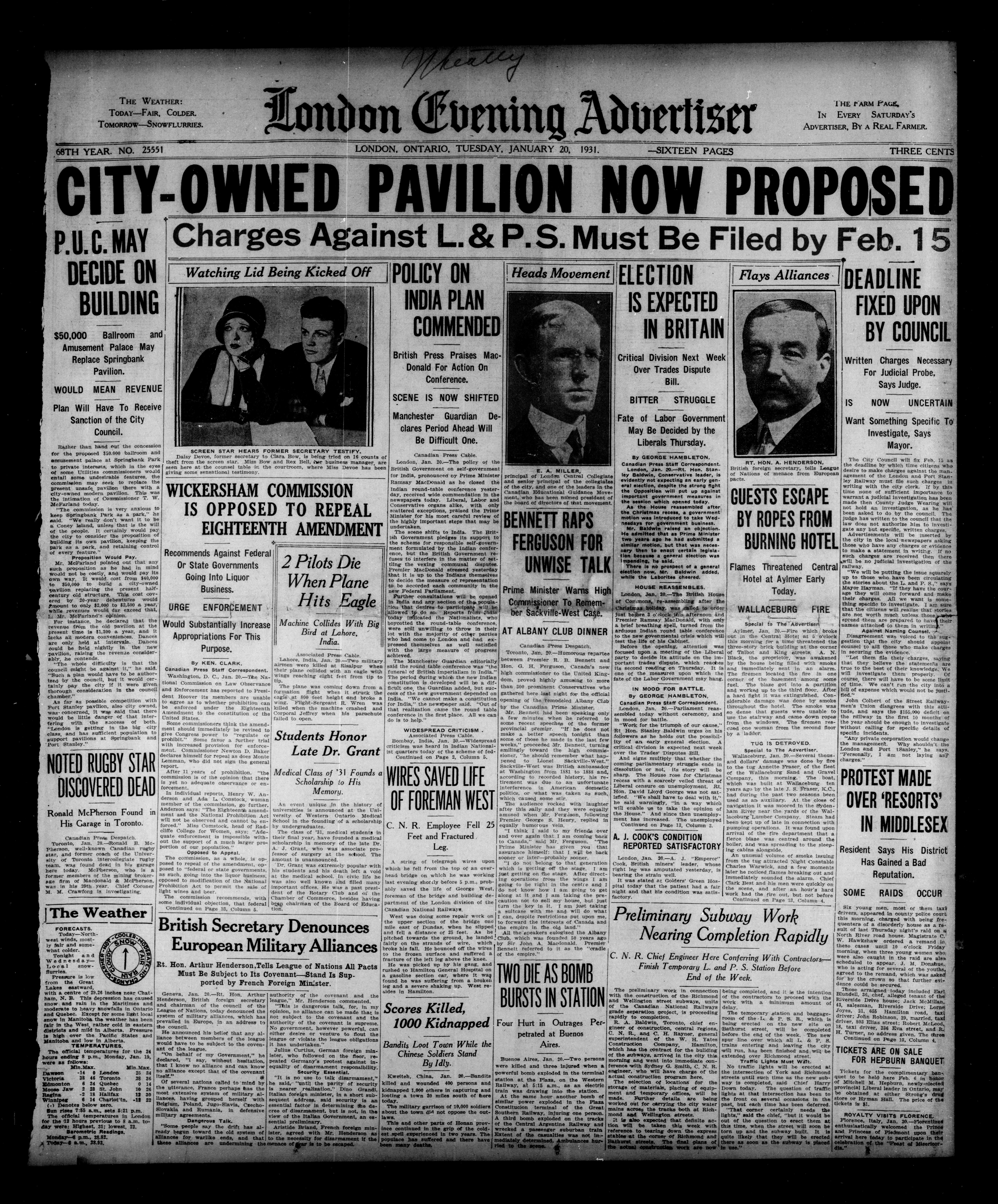London, Ontario : London Advertiser Company, Limited, [1931]; 16 images, 0 avec recherche en texte intégral