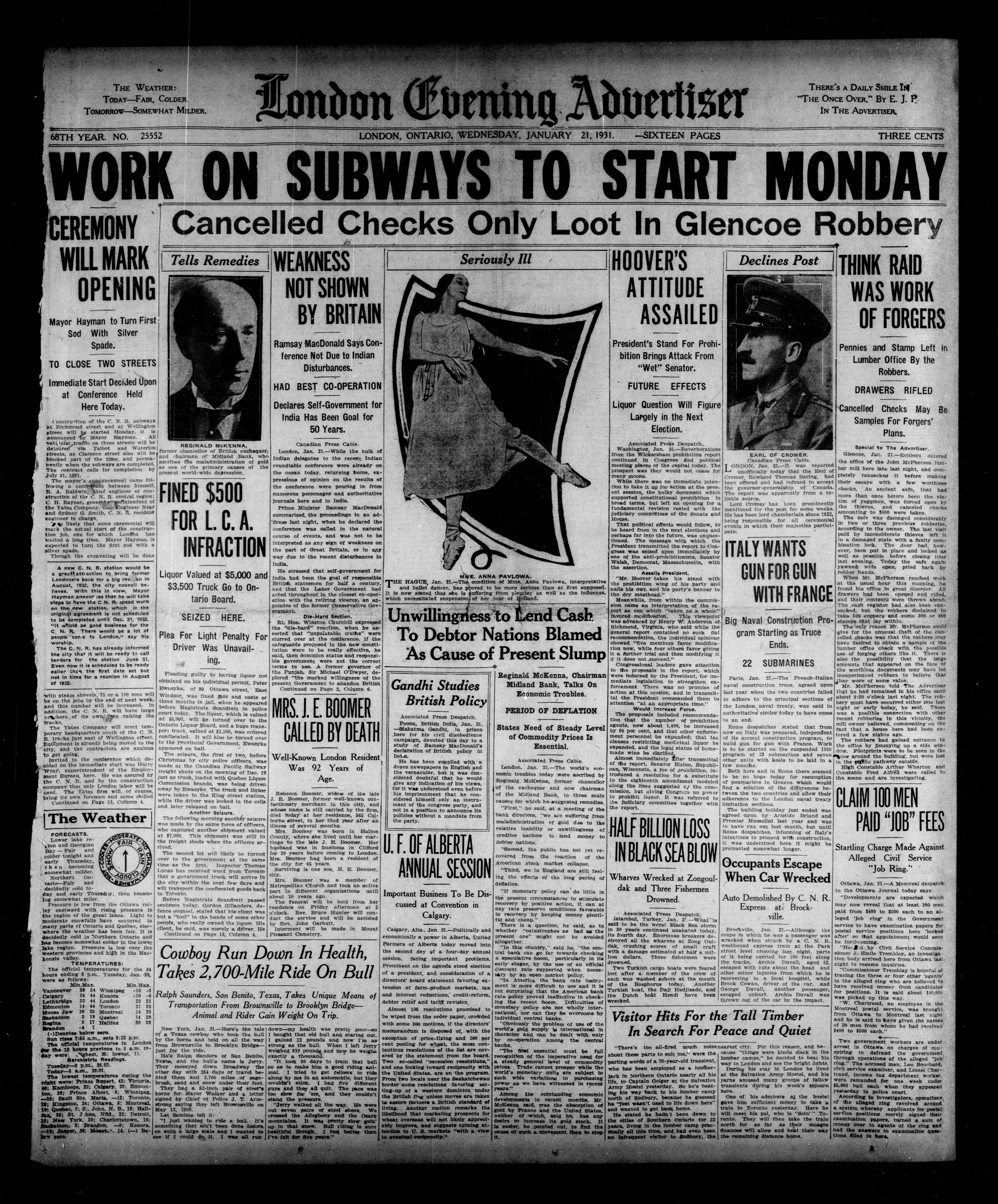 London, Ontario : London Advertiser Company, Limited, [1931]; 16 images, 0 avec recherche en texte intégral