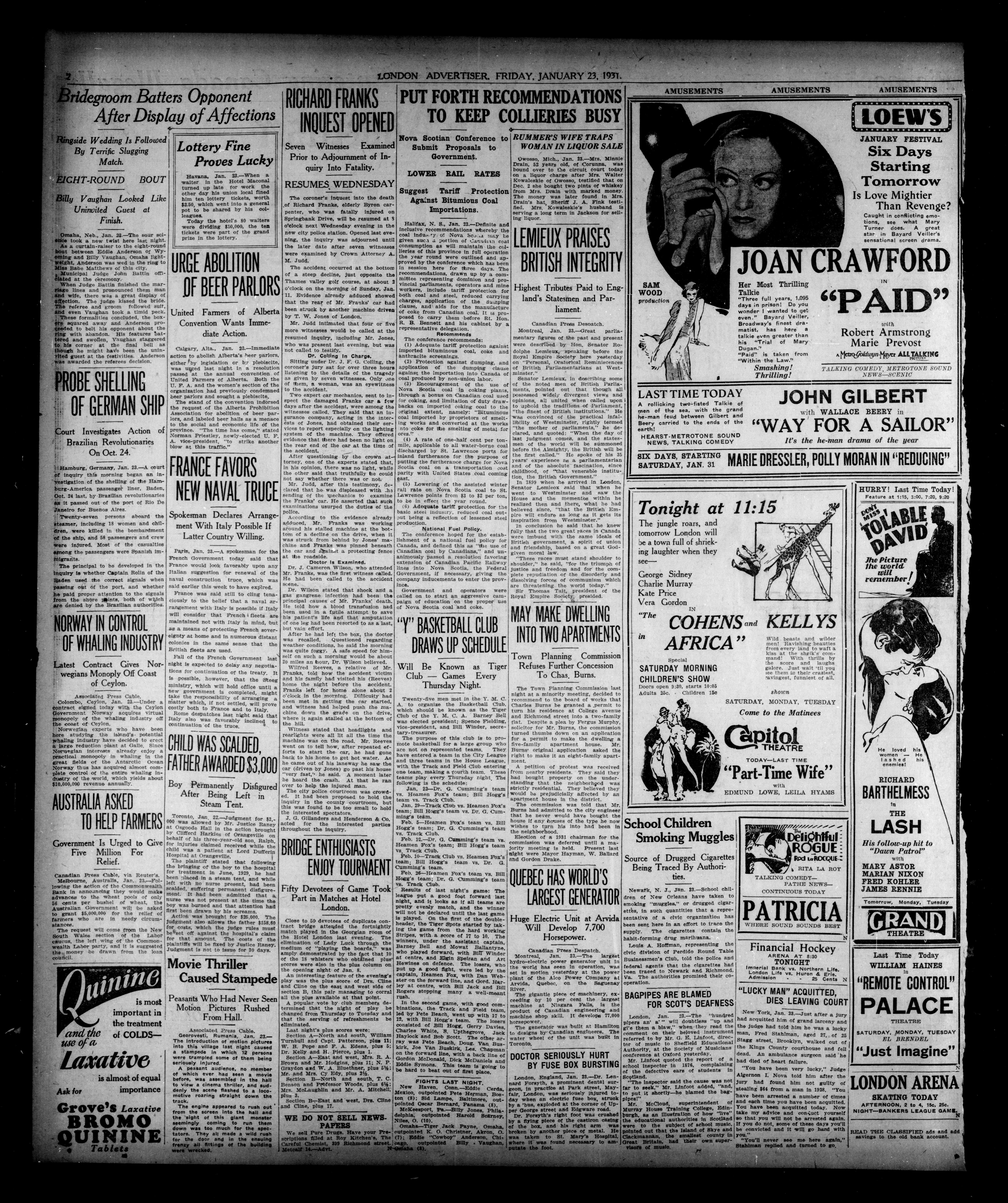 London, Ontario : London Advertiser Company, Limited, [1931]; 20 images, 0 with full-text search