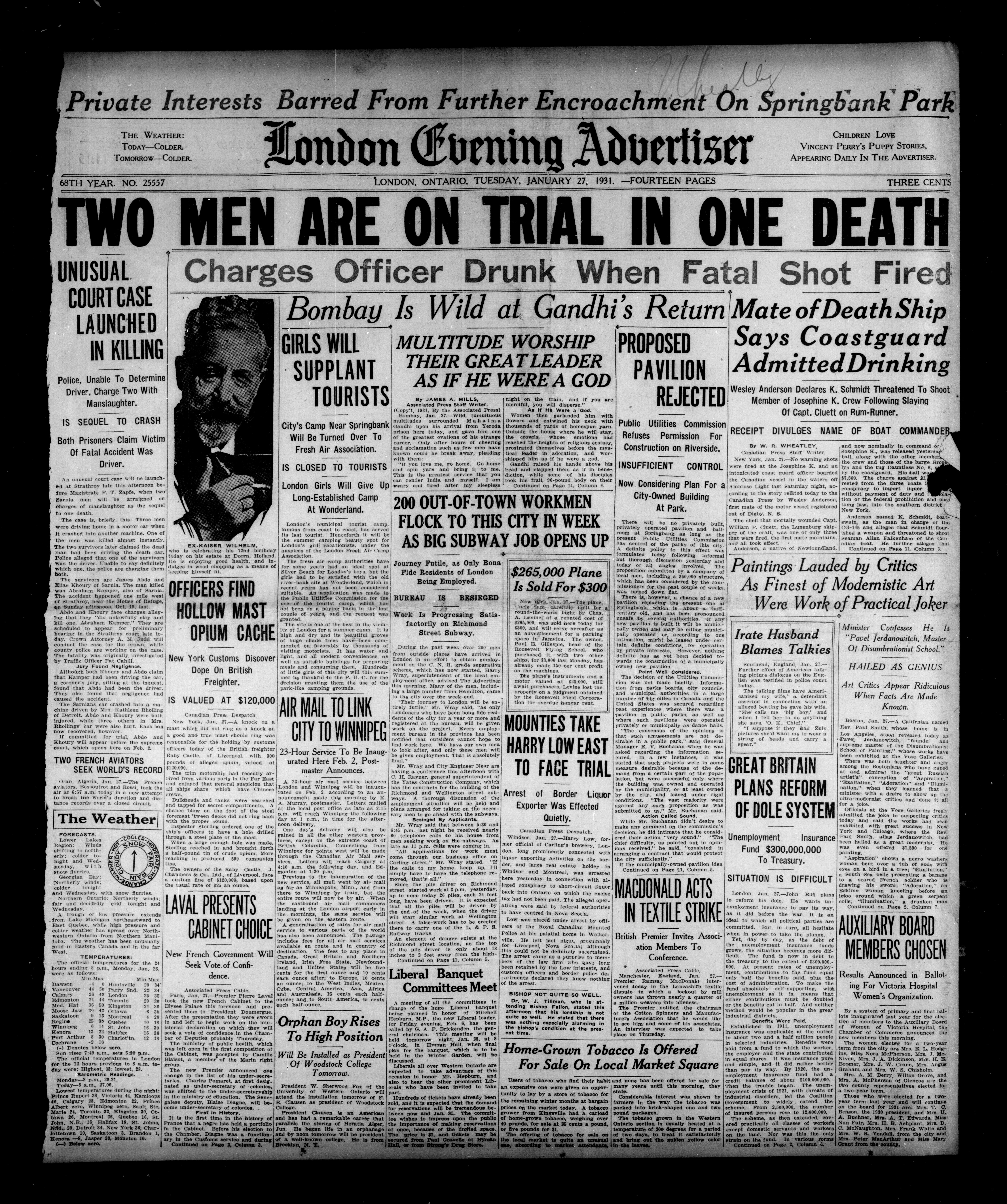 London evening advertiser : 68th Year, No. 25557 (January 27, 1931) - Adresse bibliographique