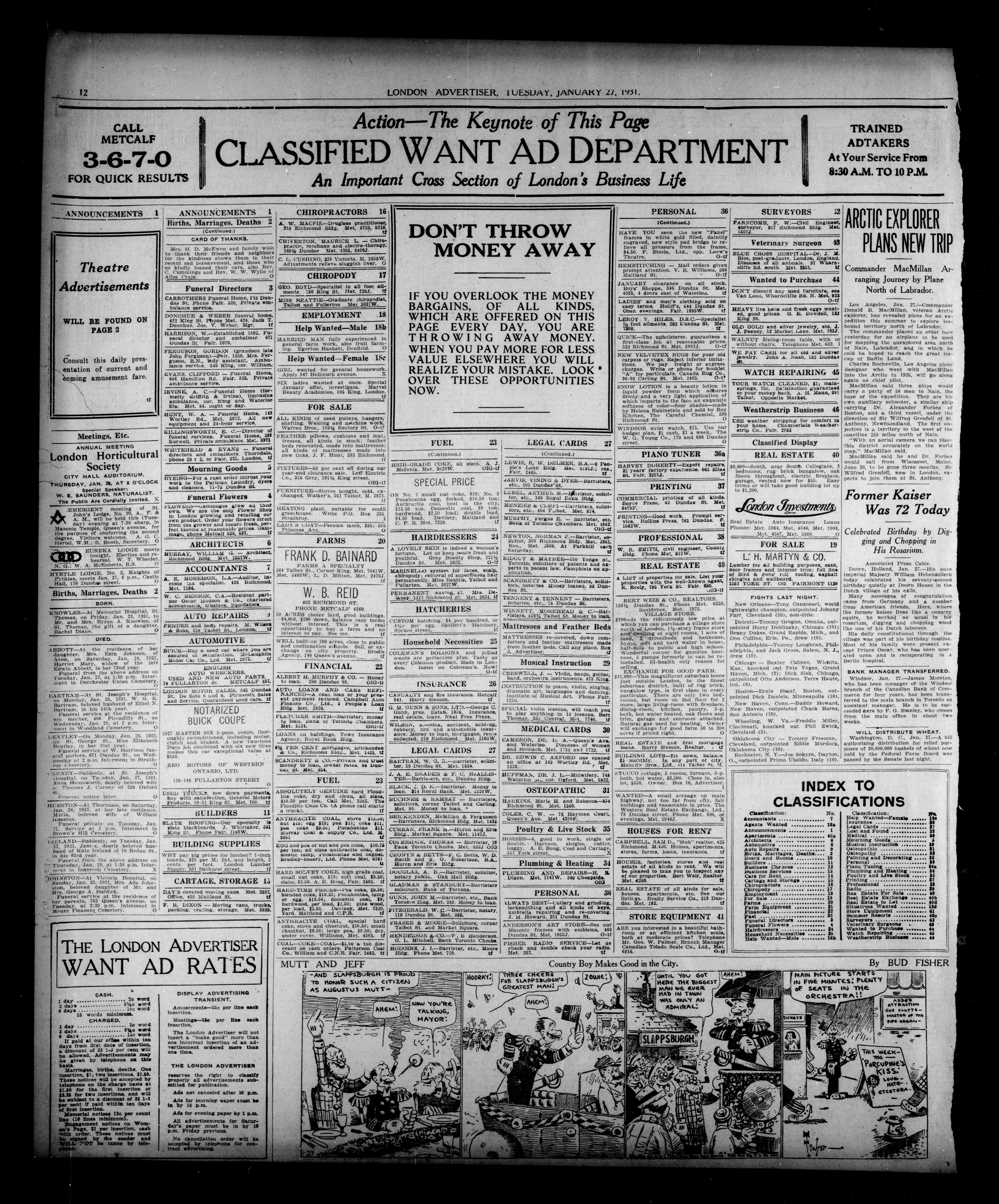 London, Ontario : London Advertiser Company, Limited, [1931]; 14 images, 0 avec recherche en texte intégral