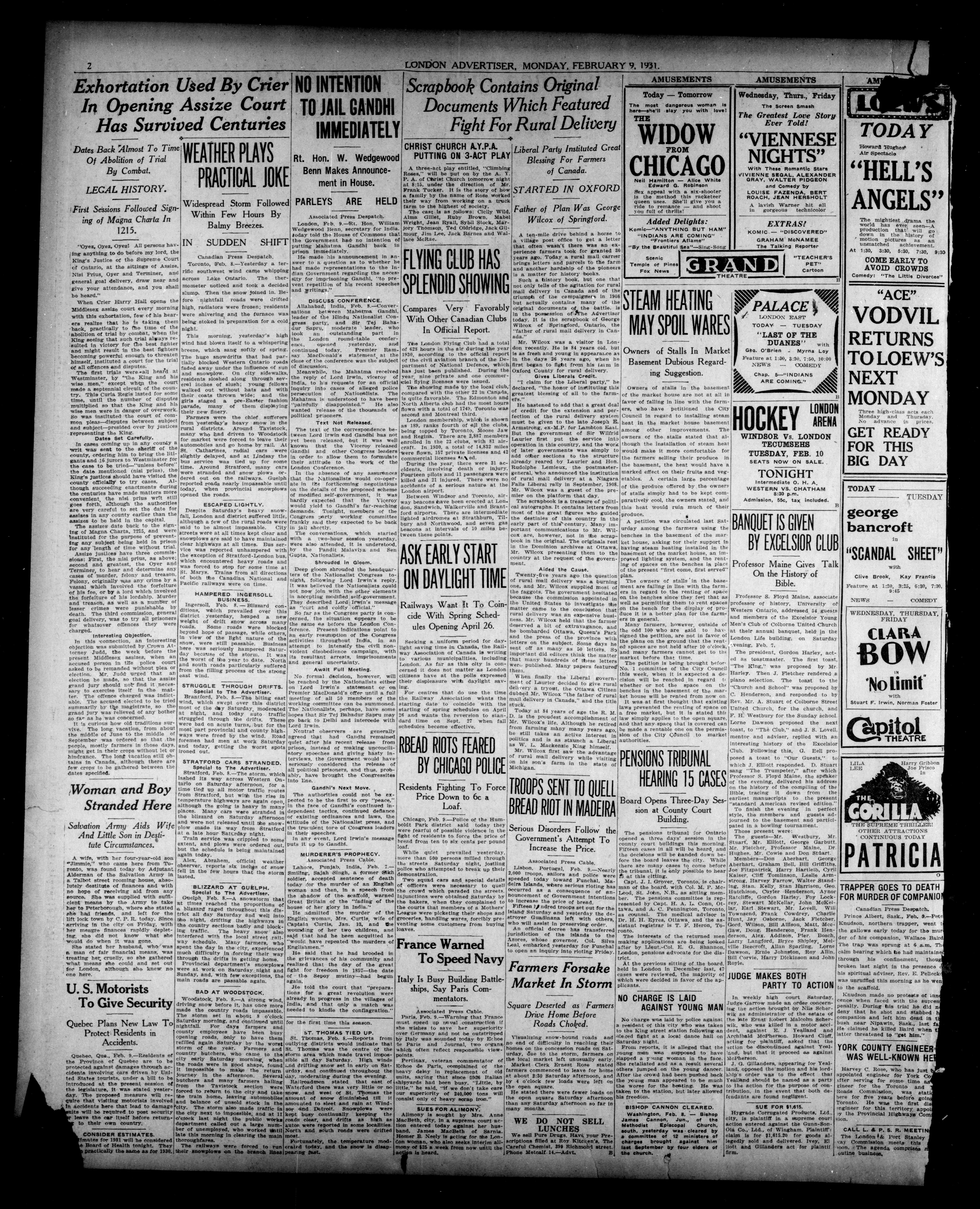 London, Ontario : London Advertiser Company, Limited, [1931]; 14 images, 0 avec recherche en texte intégral