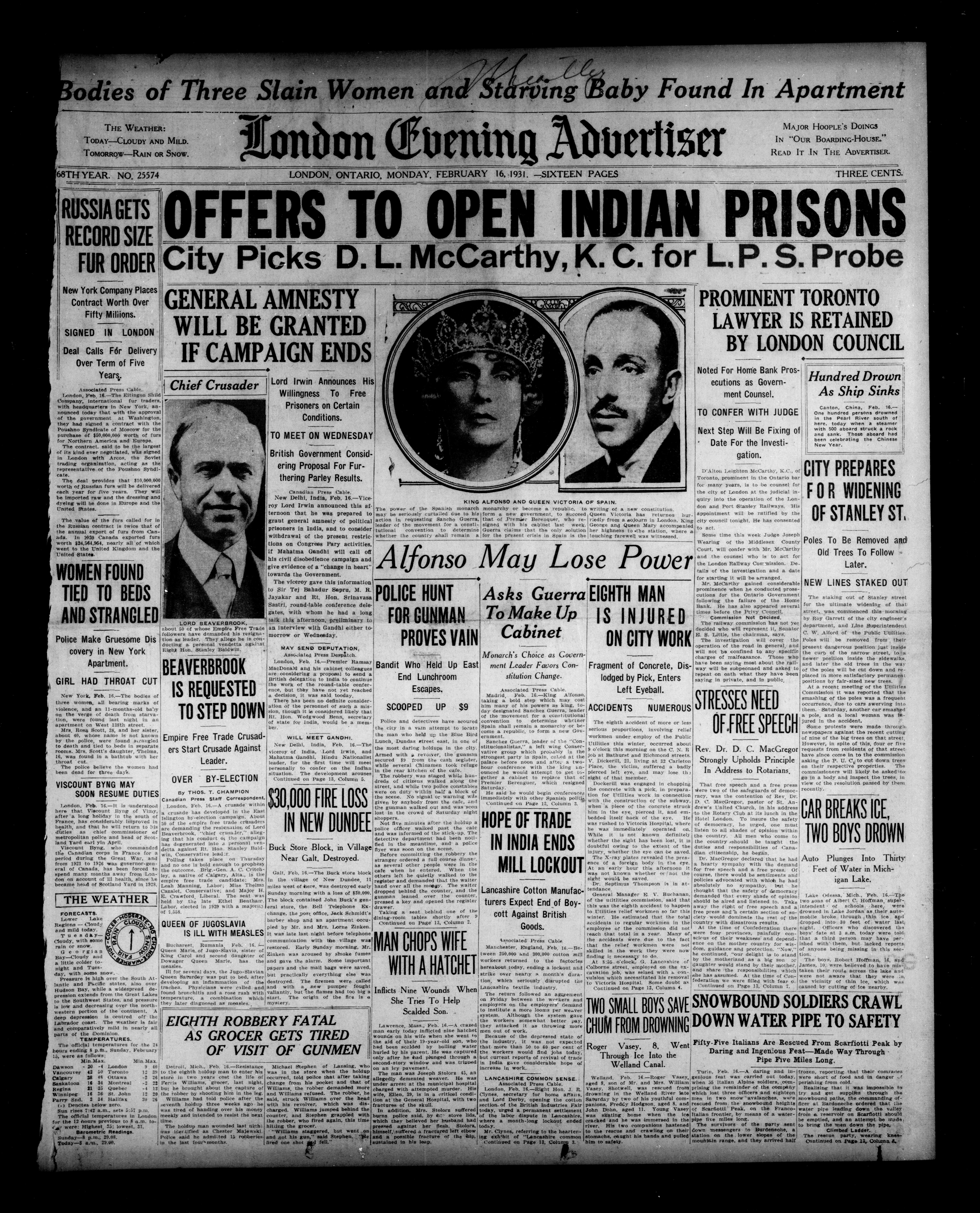 London, Ontario : London Advertiser Company, Limited, [1931]; 16 images, 0 avec recherche en texte intégral