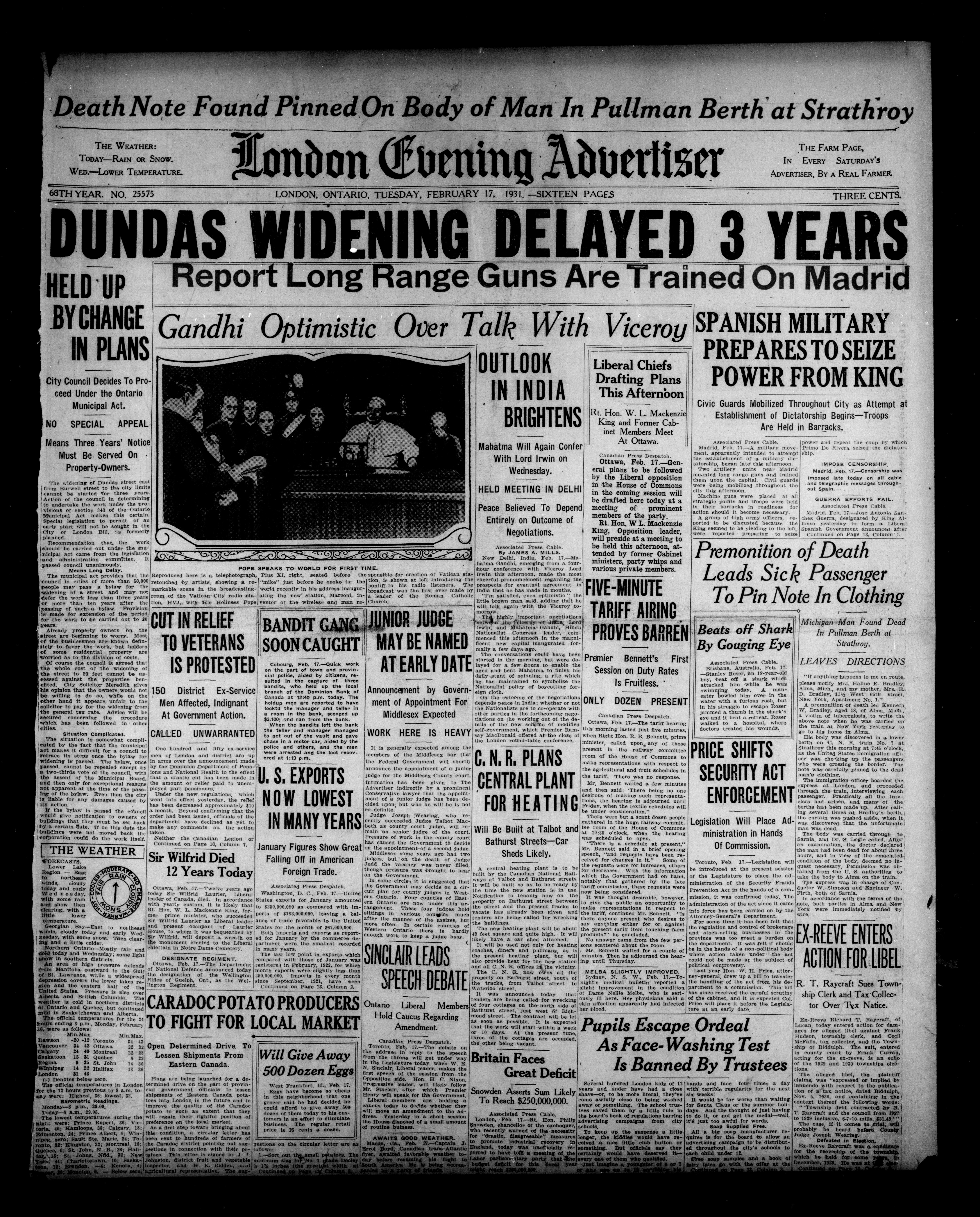 London, Ontario : London Advertiser Company, Limited, [1931]; 16 images, 0 avec recherche en texte intégral