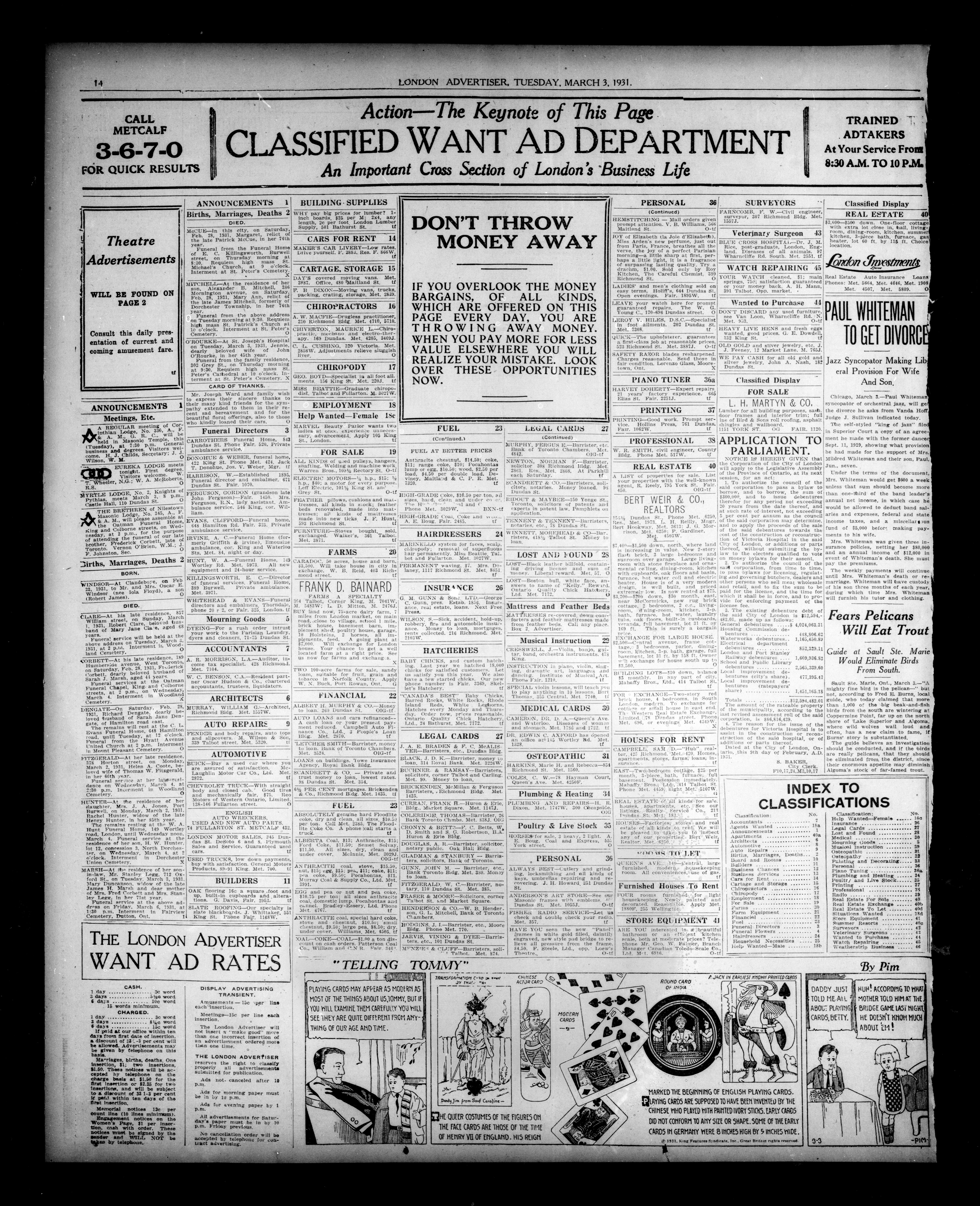 London, Ontario : London Advertiser Company, Limited, [1931]; 16 images, 0 avec recherche en texte intégral