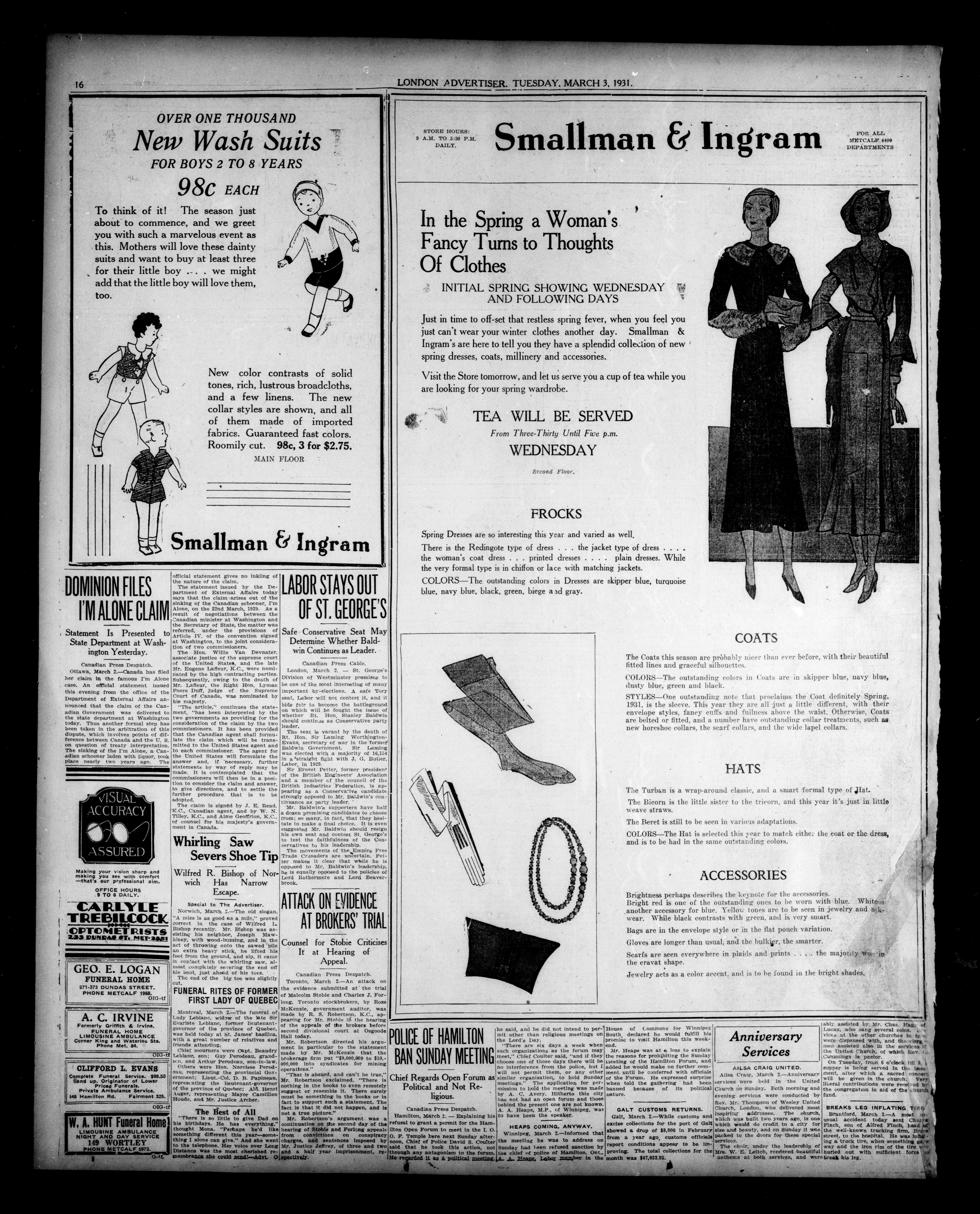 London, Ontario : London Advertiser Company, Limited, [1931]; 16 images, 0 avec recherche en texte intégral
