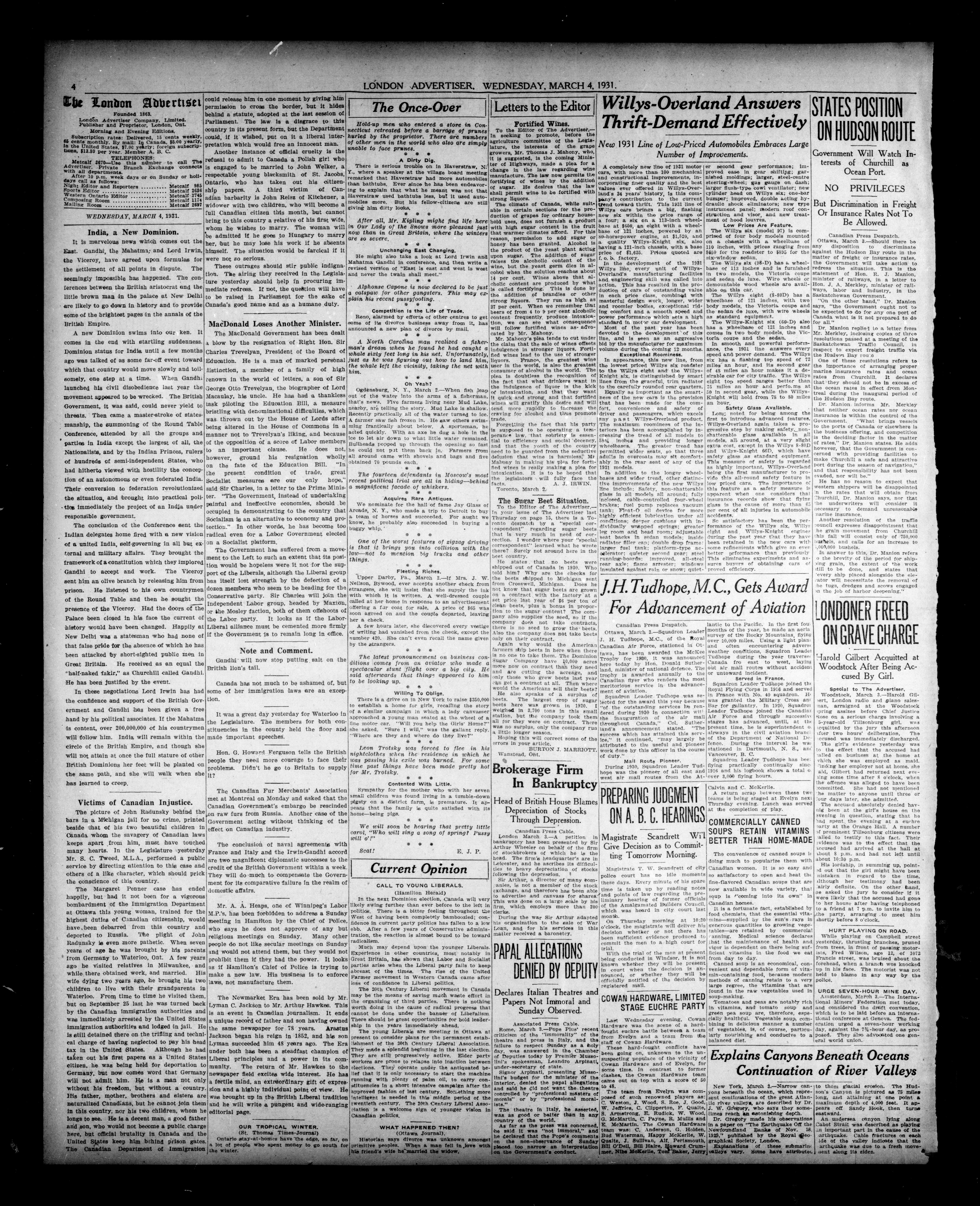 London evening advertiser : 68th Year, No. 25588 (March 4, 1931)