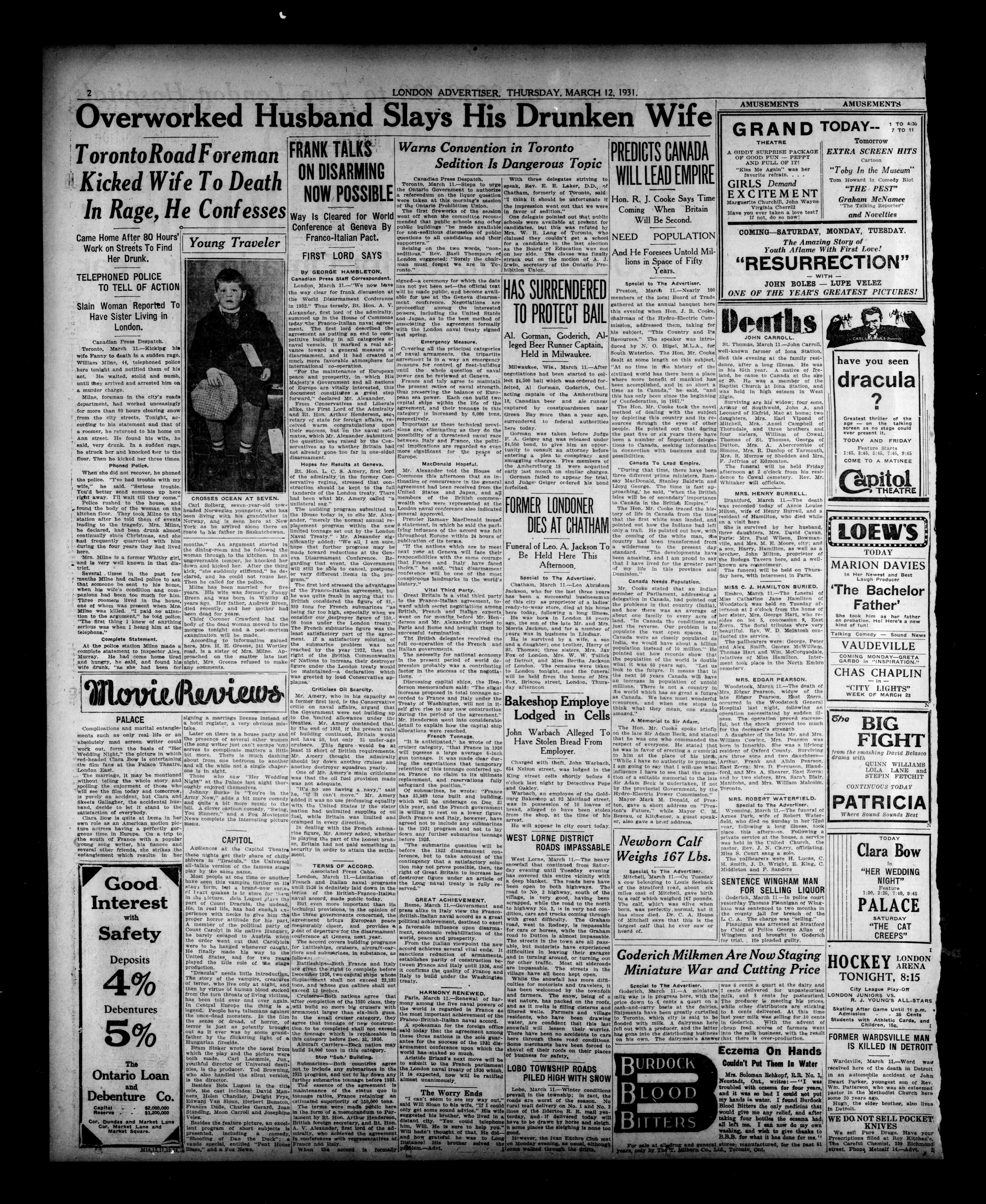London, Ontario : London Advertiser Company, Limited, [1931]; 20 images, 0 with full-text search