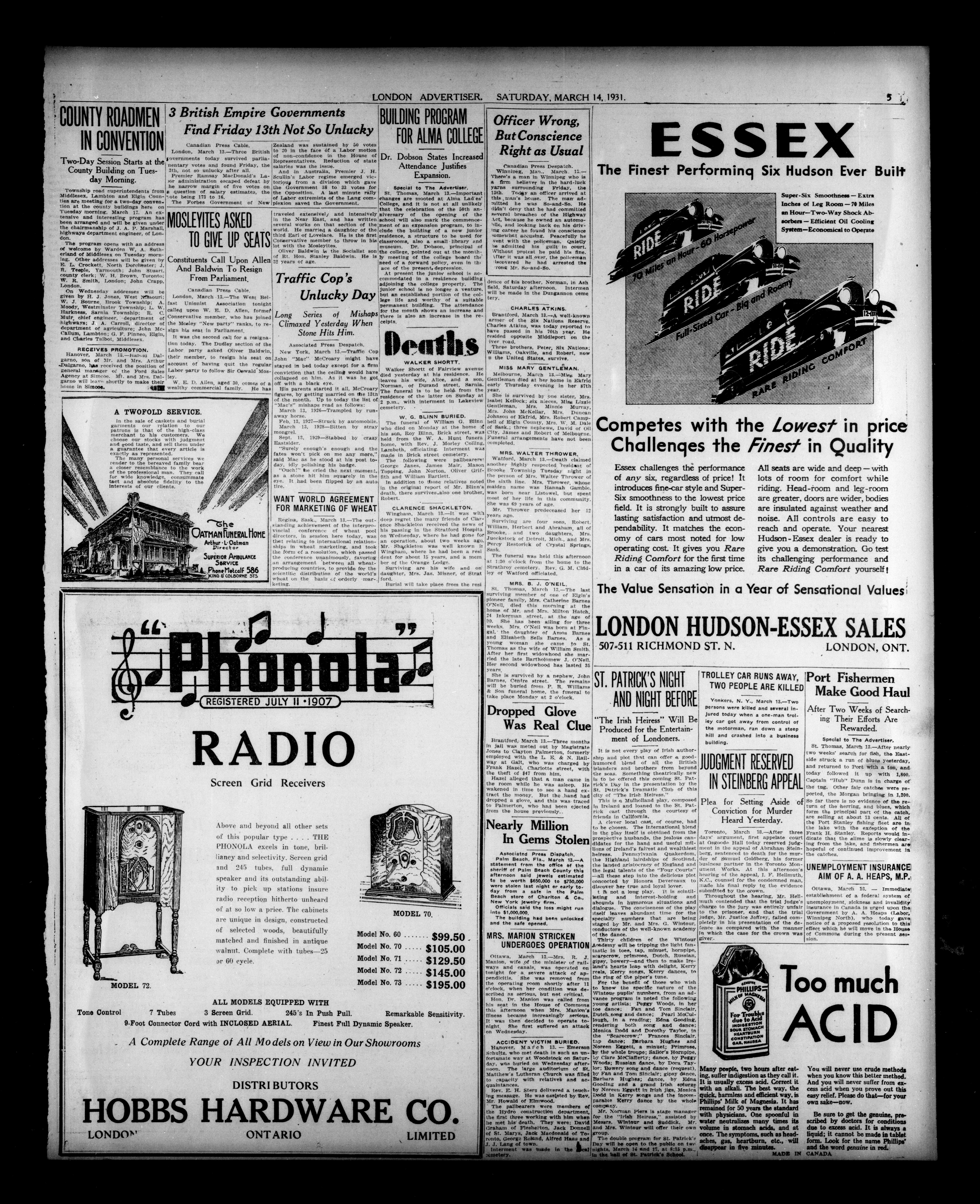 London, Ontario : London Advertiser Company, Limited, [1931]; 22 images, 0 avec recherche en texte intégral