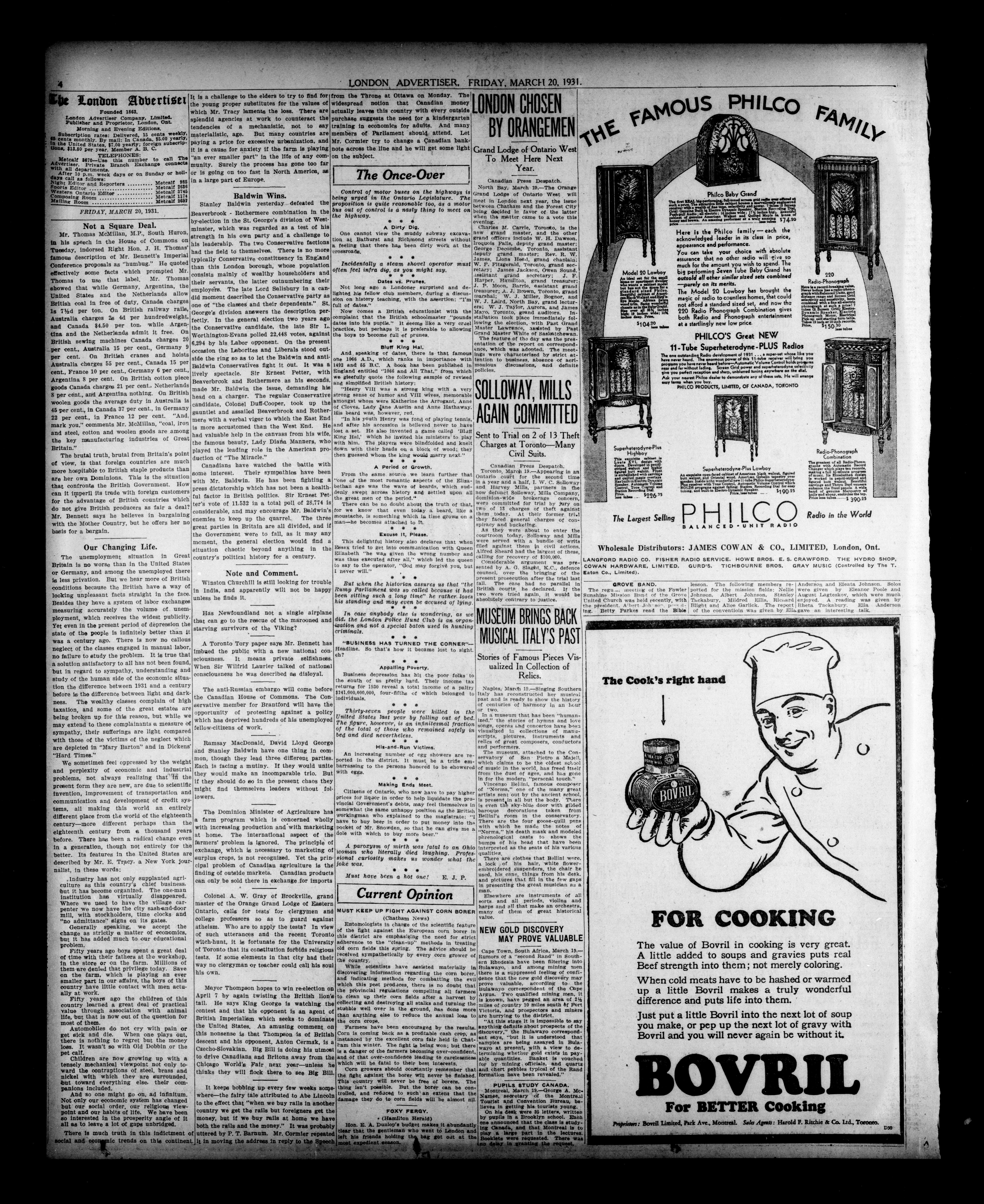 London, Ontario : London Advertiser Company, Limited, [1931]; 18 images, 0 avec recherche en texte intégral