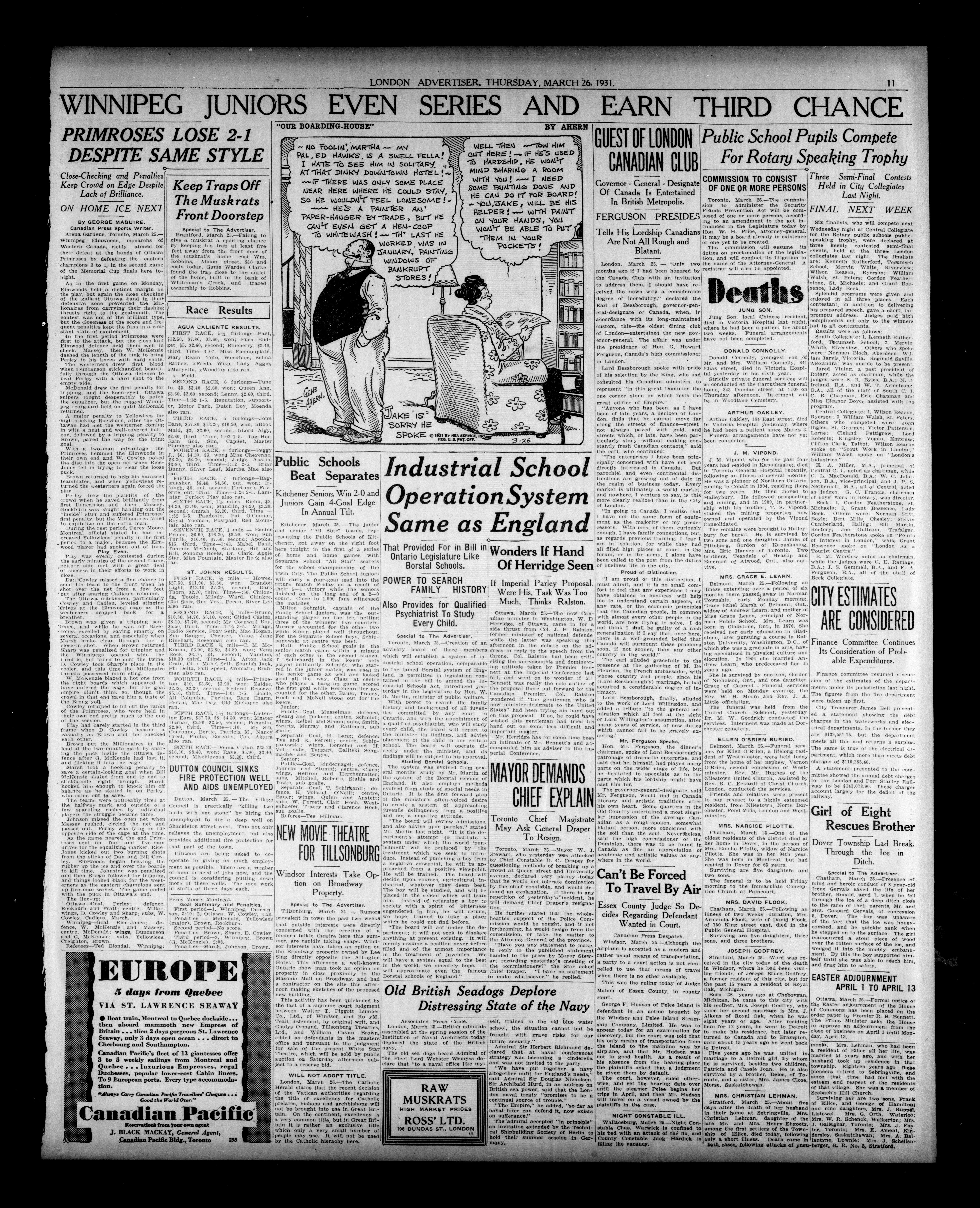 London, Ontario : London Advertiser Company, Limited, [1931]; 16 images, 0 avec recherche en texte intégral