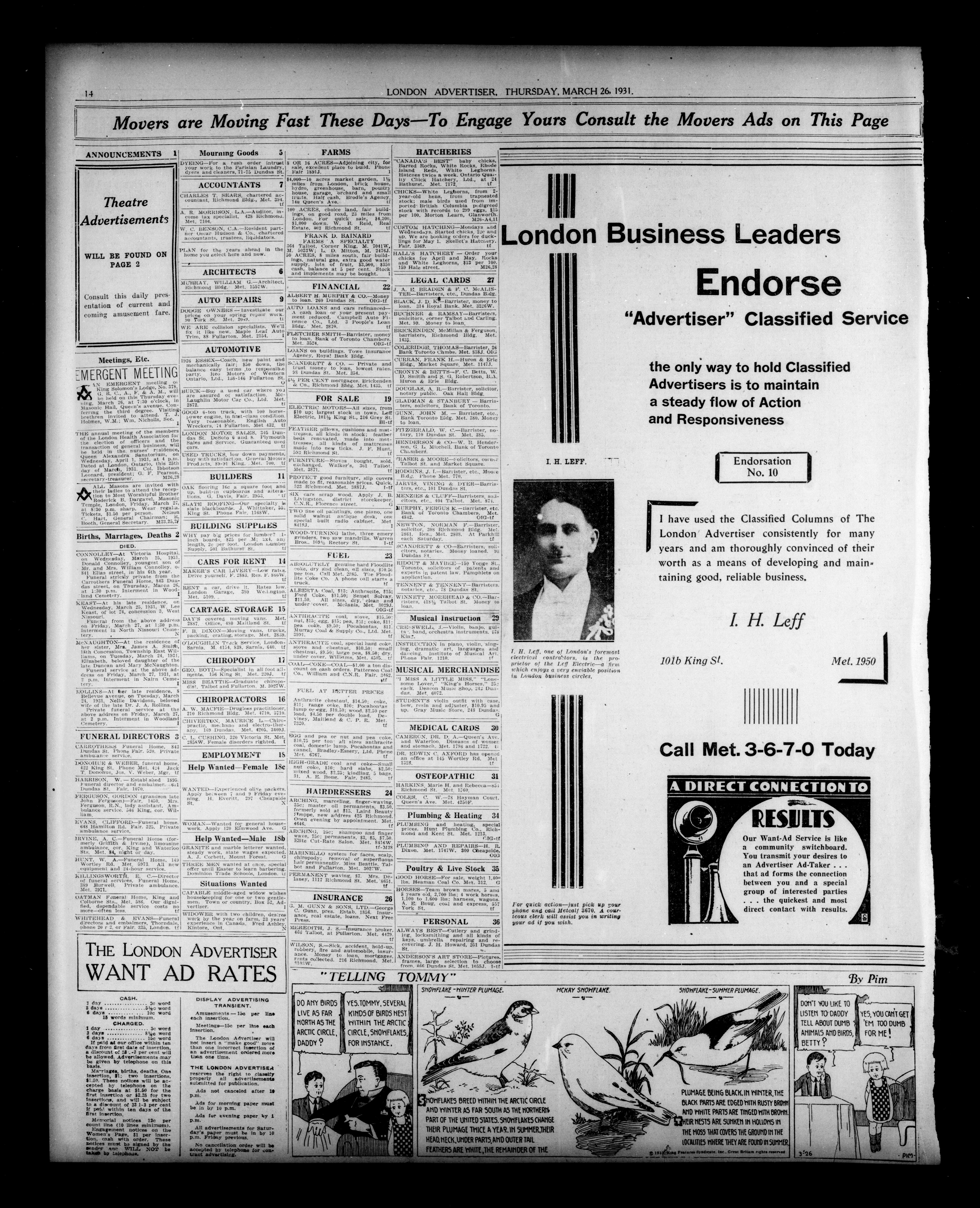 Aide London, Ontario : London Advertiser Company, Limited, [1931]; 16 images, 0 avec recherche en texte intégral