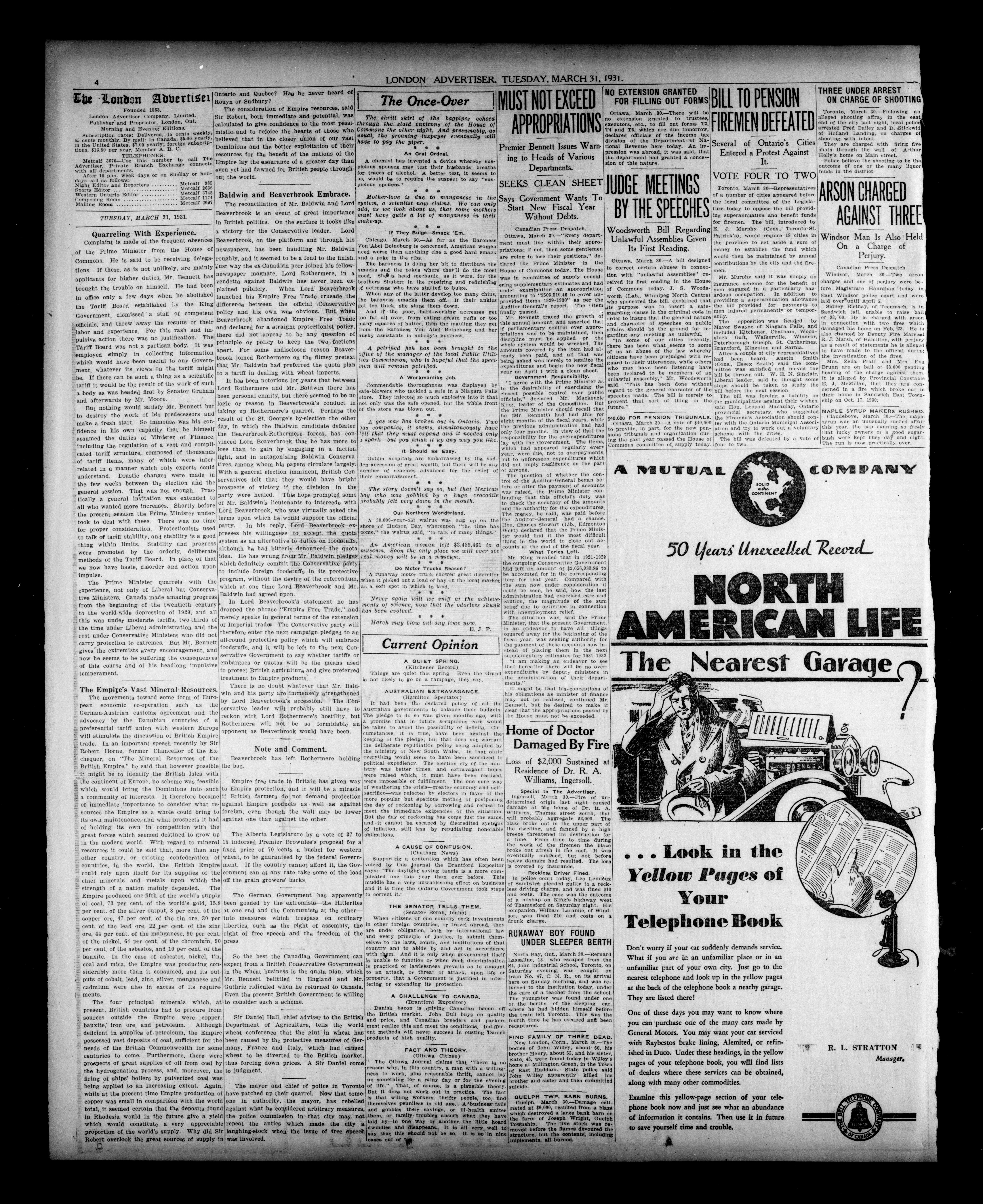 London, Ontario : London Advertiser Company, Limited, [1931]; 18 images, 0 avec recherche en texte intégral