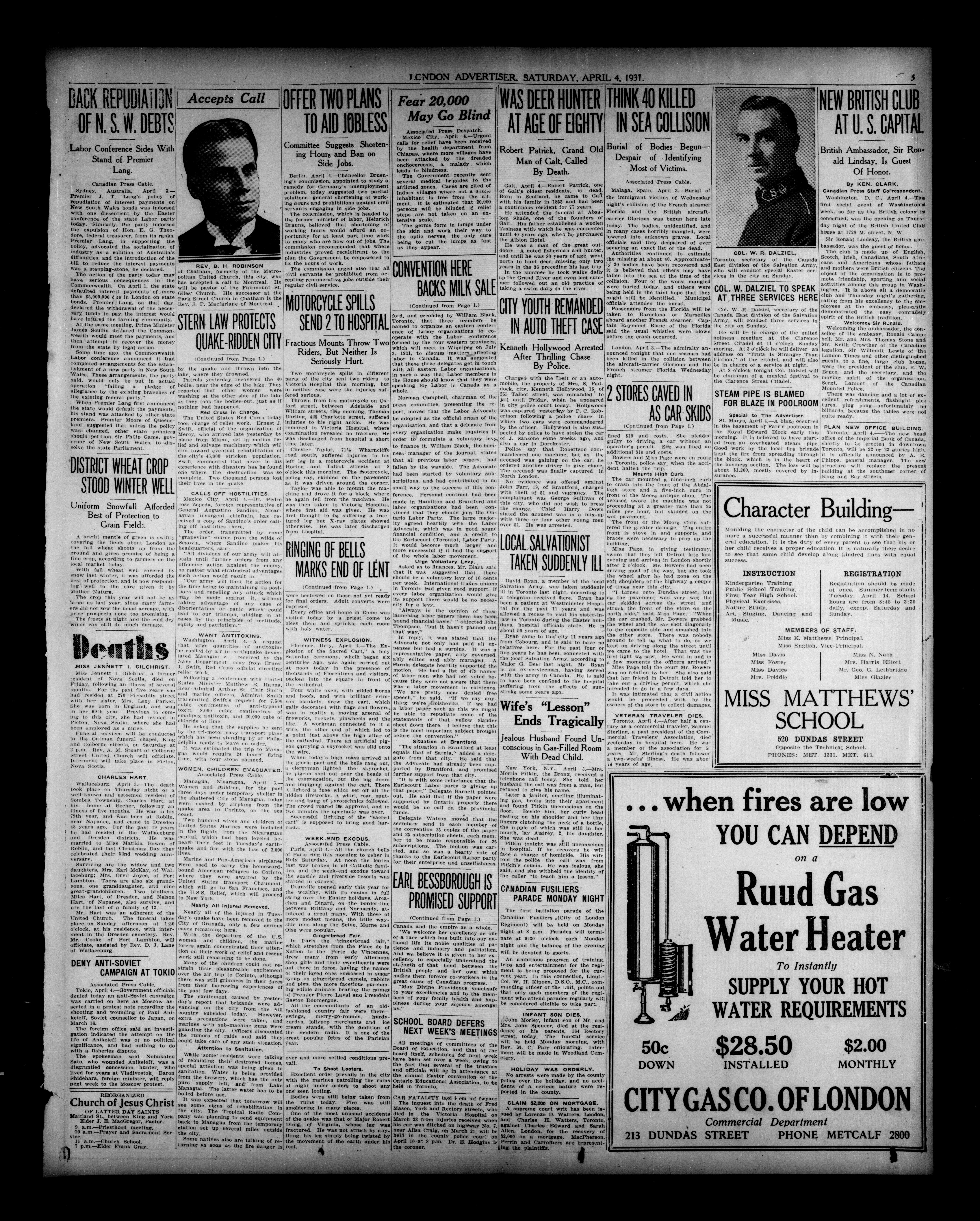 London, Ontario : London Advertiser Company, Limited, [1931]; 22 images, 0 avec recherche en texte intégral