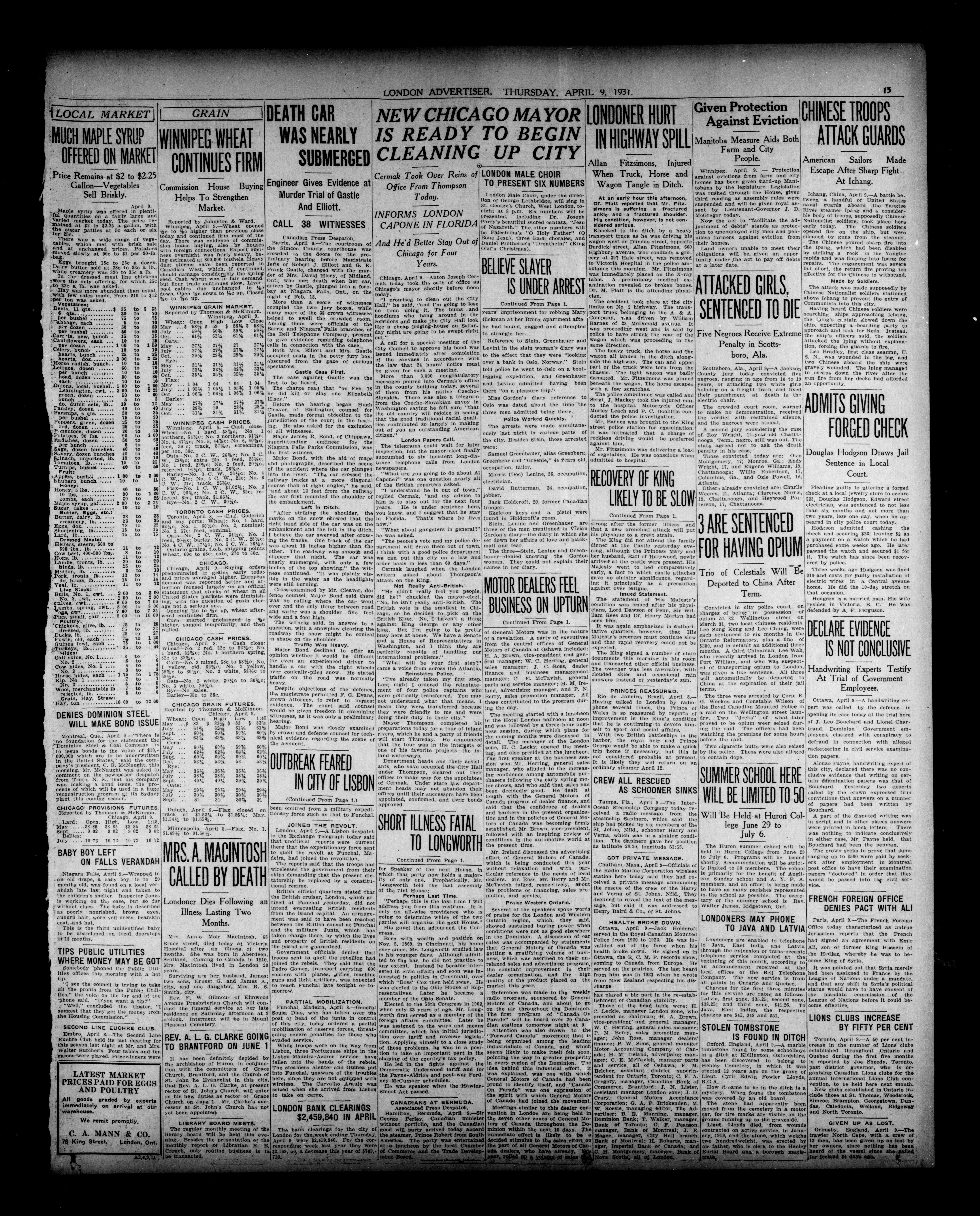London evening advertiser : 68th Year, No. 25619 (April 9, 1931)
