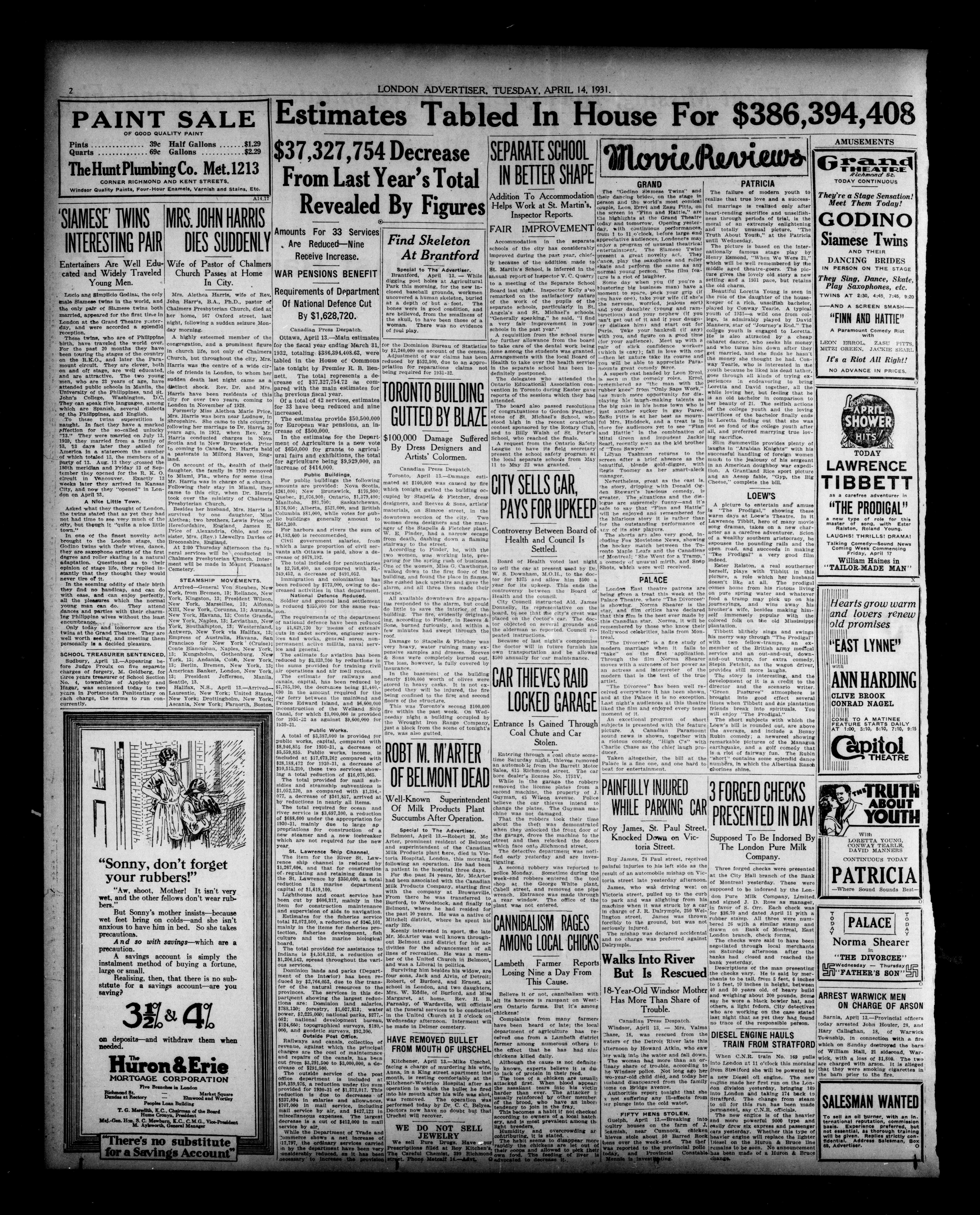 London, Ontario : London Advertiser Company, Limited, [1931]; 16 images, 0 with full-text search