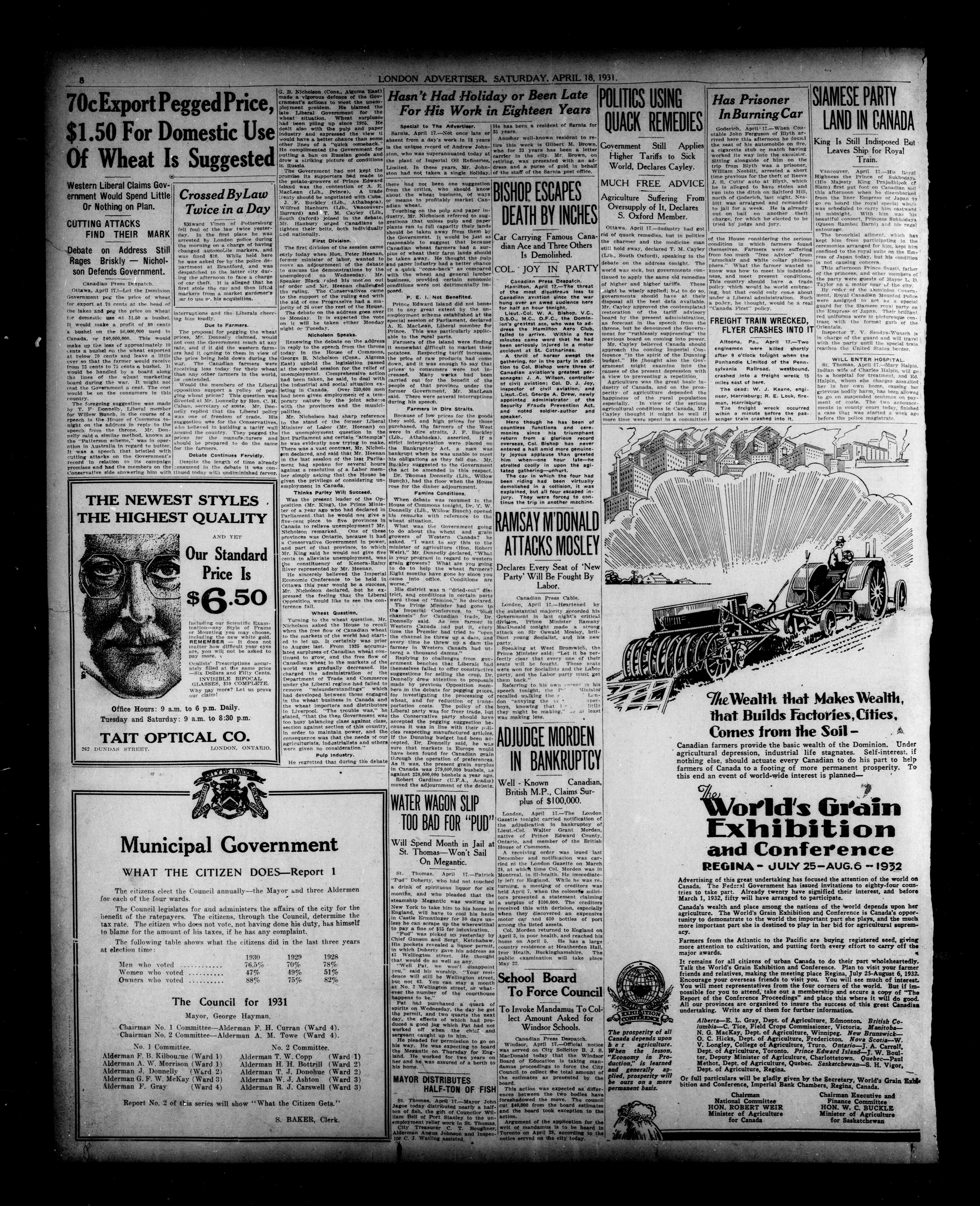 London, Ontario : London Advertiser Company, Limited, [1931]; 22 images, 0 with full-text search