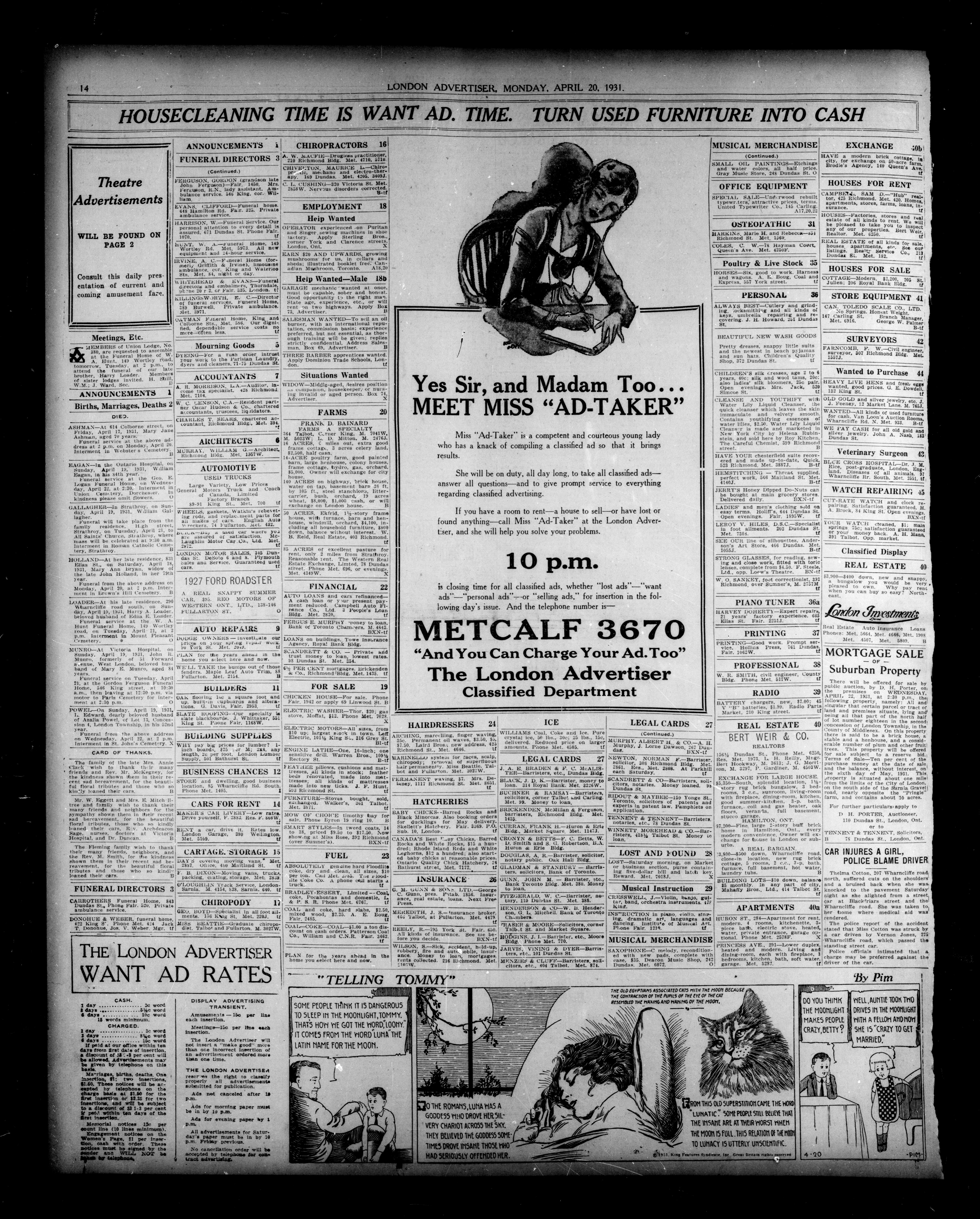 London, Ontario : London Advertiser Company, Limited, [1931]; 16 images, 0 avec recherche en texte intégral