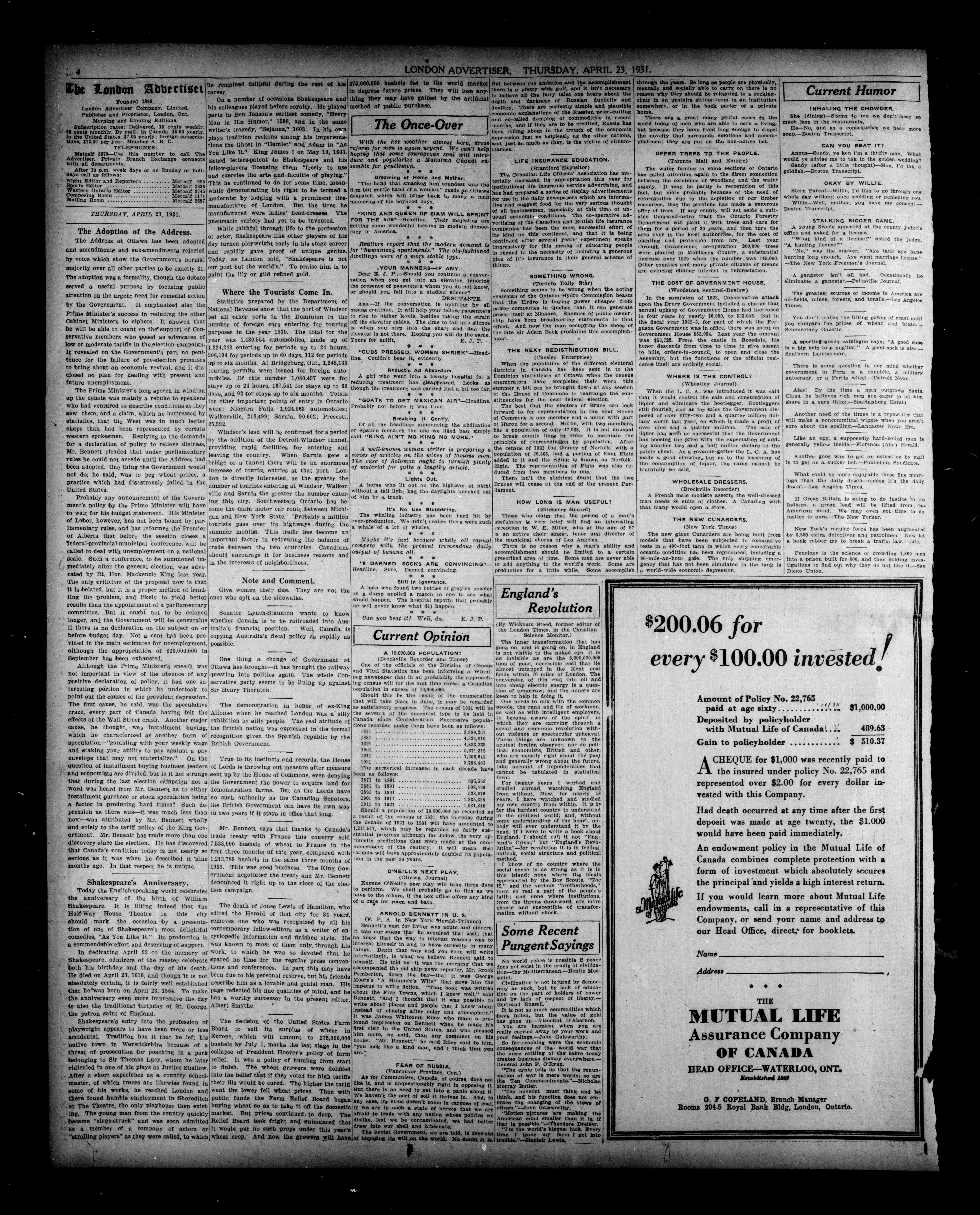 London, Ontario : London Advertiser Company, Limited, [1931]